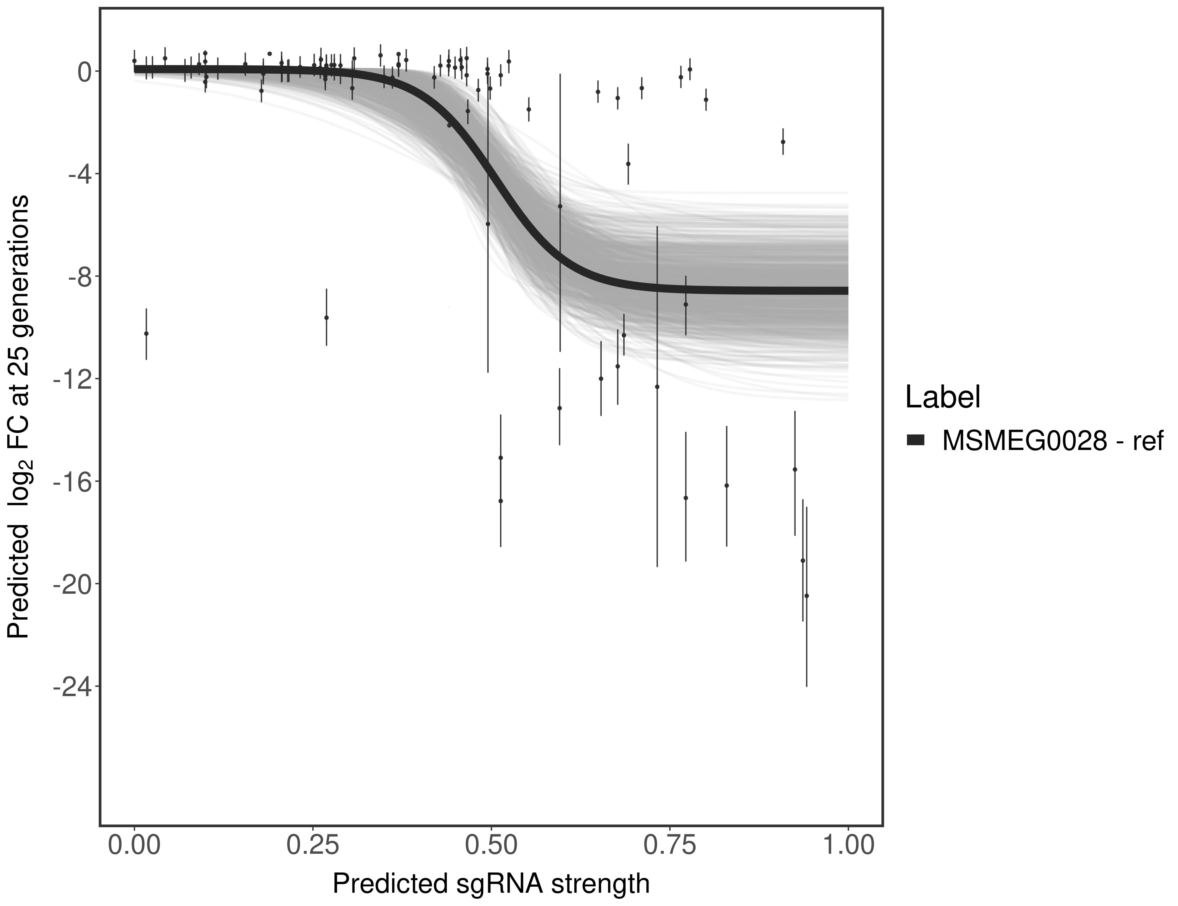 Experiment: We designed an M. tuberculosis CRISPRi library (RLC12) to target all annotated Mtb genes with single guide RNAs (sgRNAs) of varying predicted knockdown efficiencies.