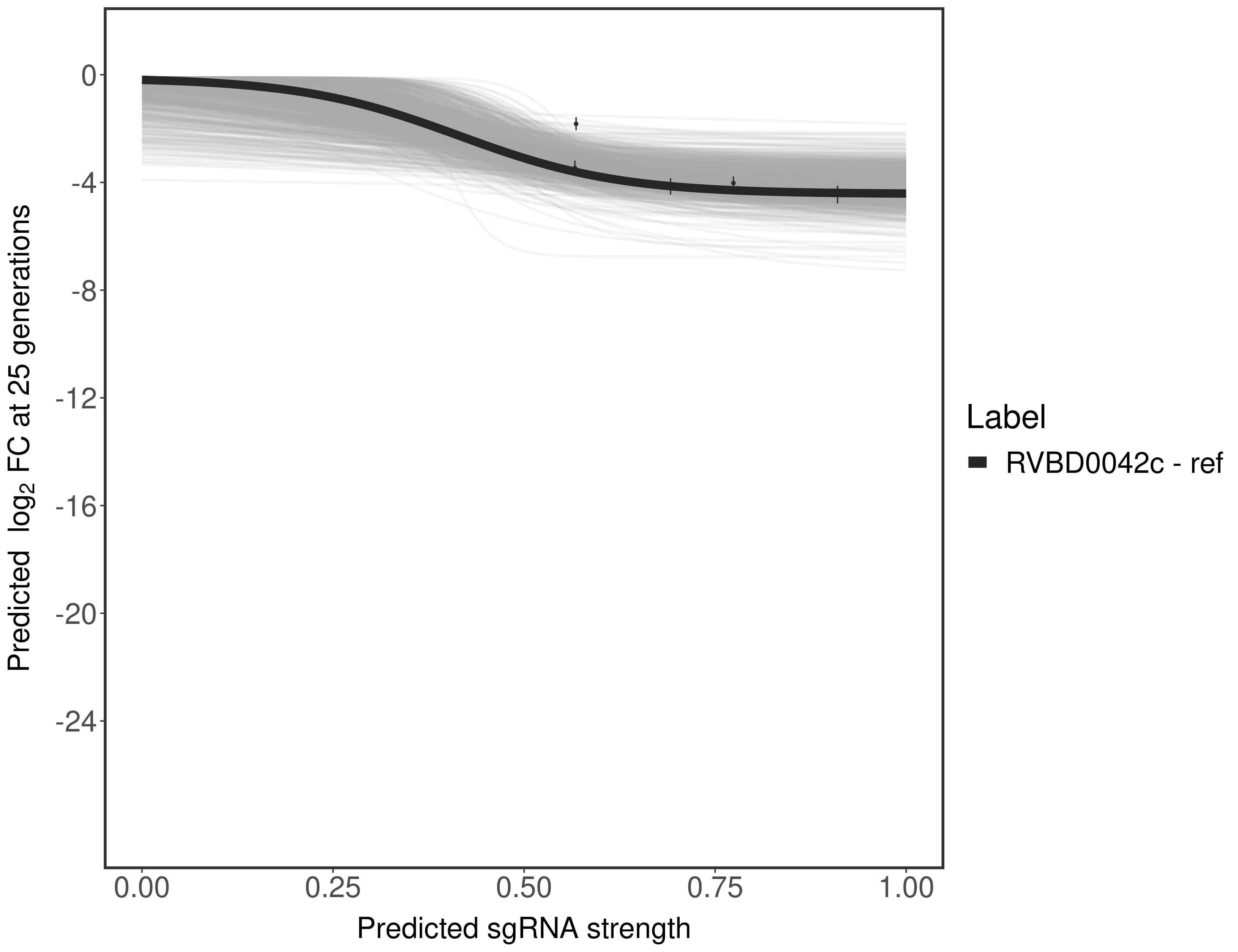 Here, we show sgRNA log2 fold-change values (L2FC) (plus versus minus ATc) over consecutive generations for sgRNAs targeting the gene you selected.