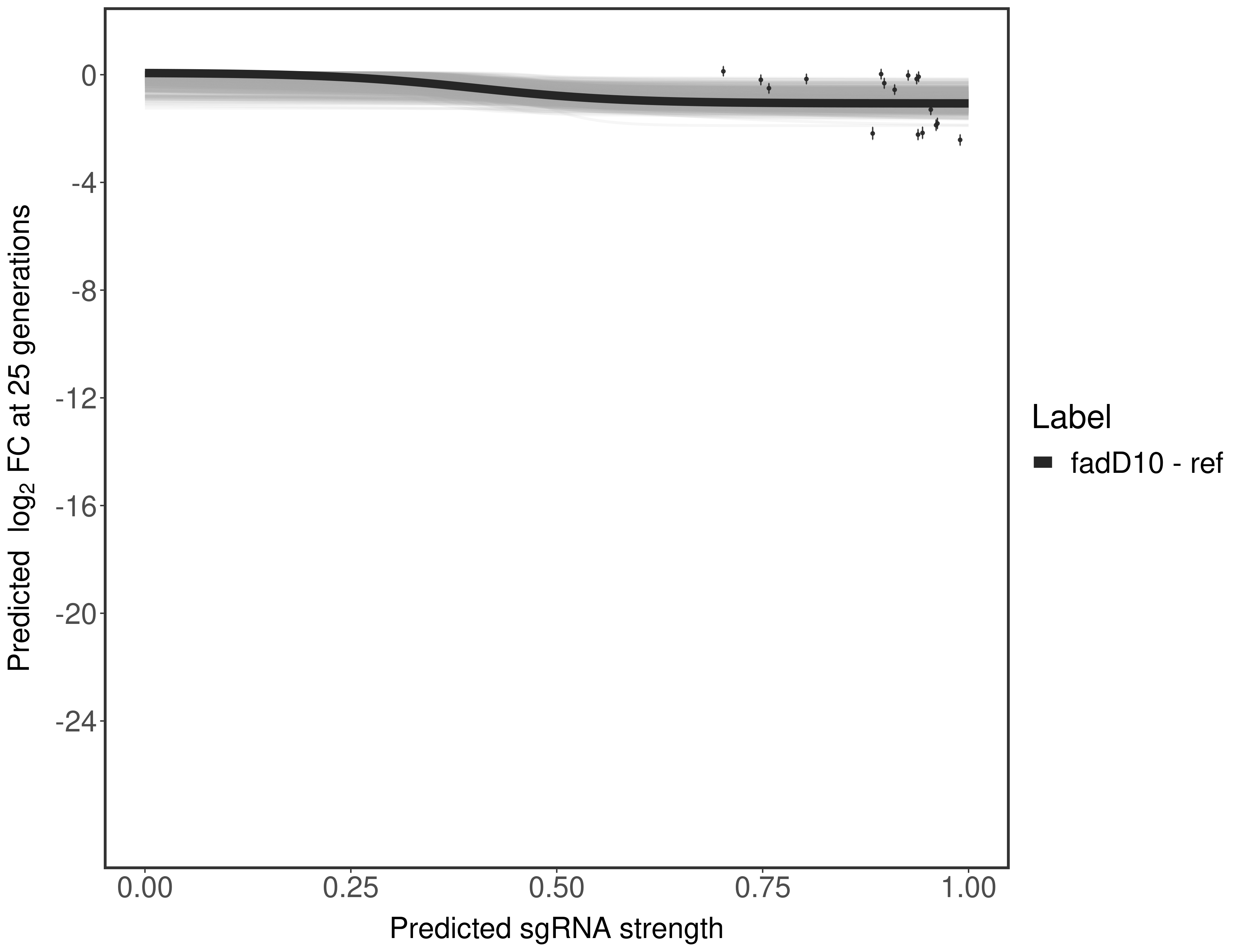 Here, we show sgRNA log2 fold-change values (L2FC) (plus versus minus ATc) over consecutive generations for sgRNAs targeting the gene you selected.