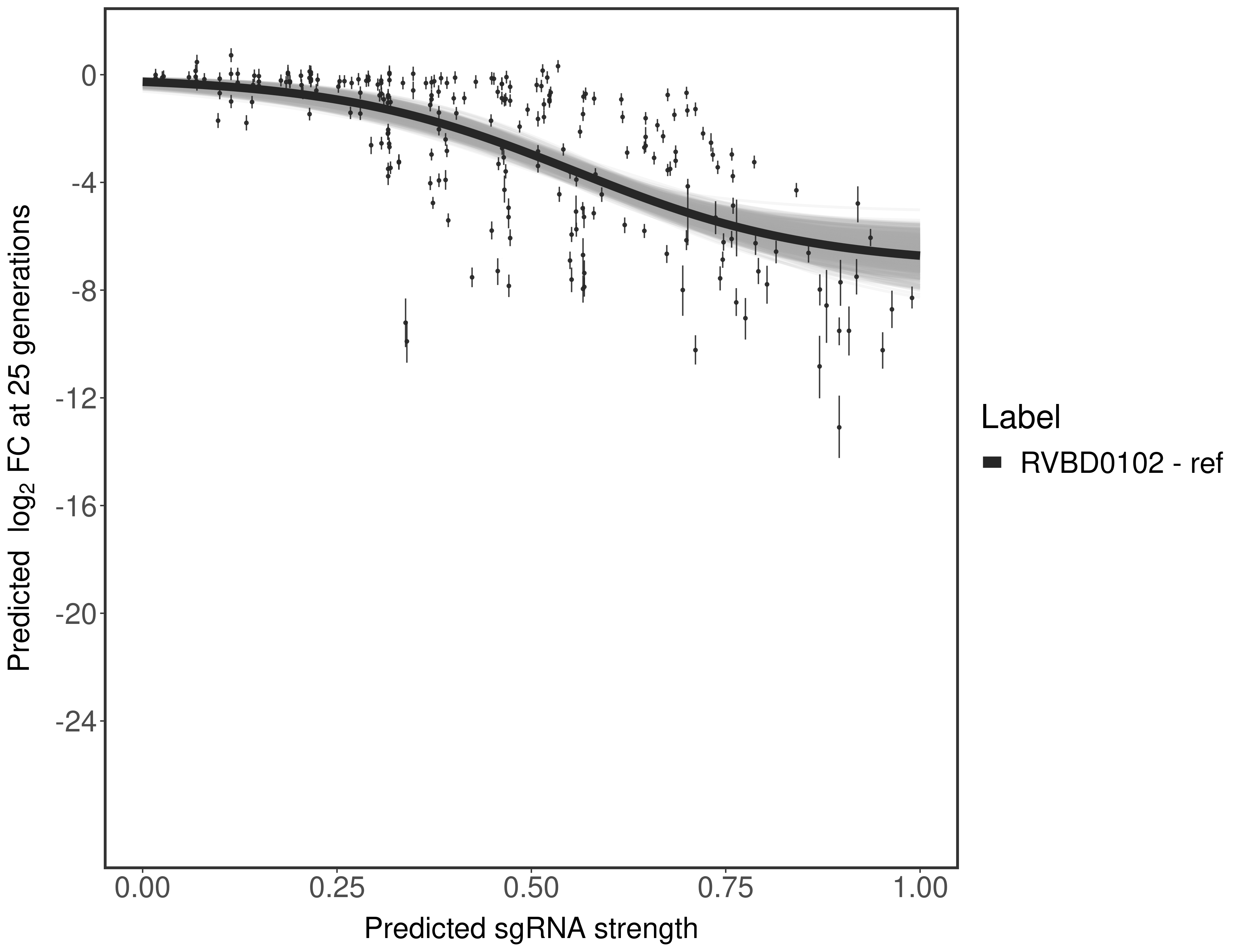 Experiment: We designed an M. tuberculosis CRISPRi library (RLC12) to target all annotated Mtb genes with single guide RNAs (sgRNAs) of varying predicted knockdown efficiencies.