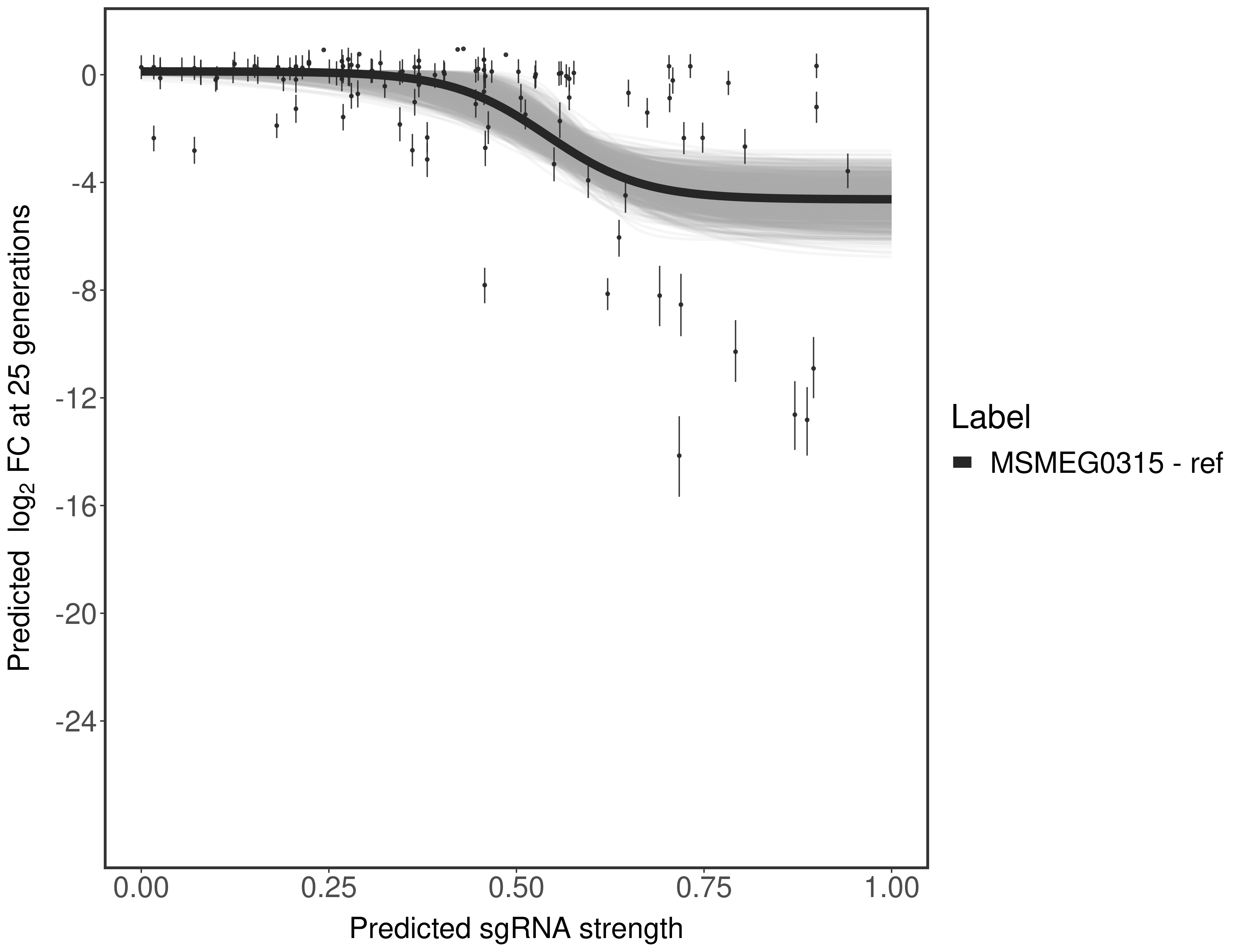 Experiment: We designed an M. tuberculosis CRISPRi library (RLC12) to target all annotated Mtb genes with single guide RNAs (sgRNAs) of varying predicted knockdown efficiencies.