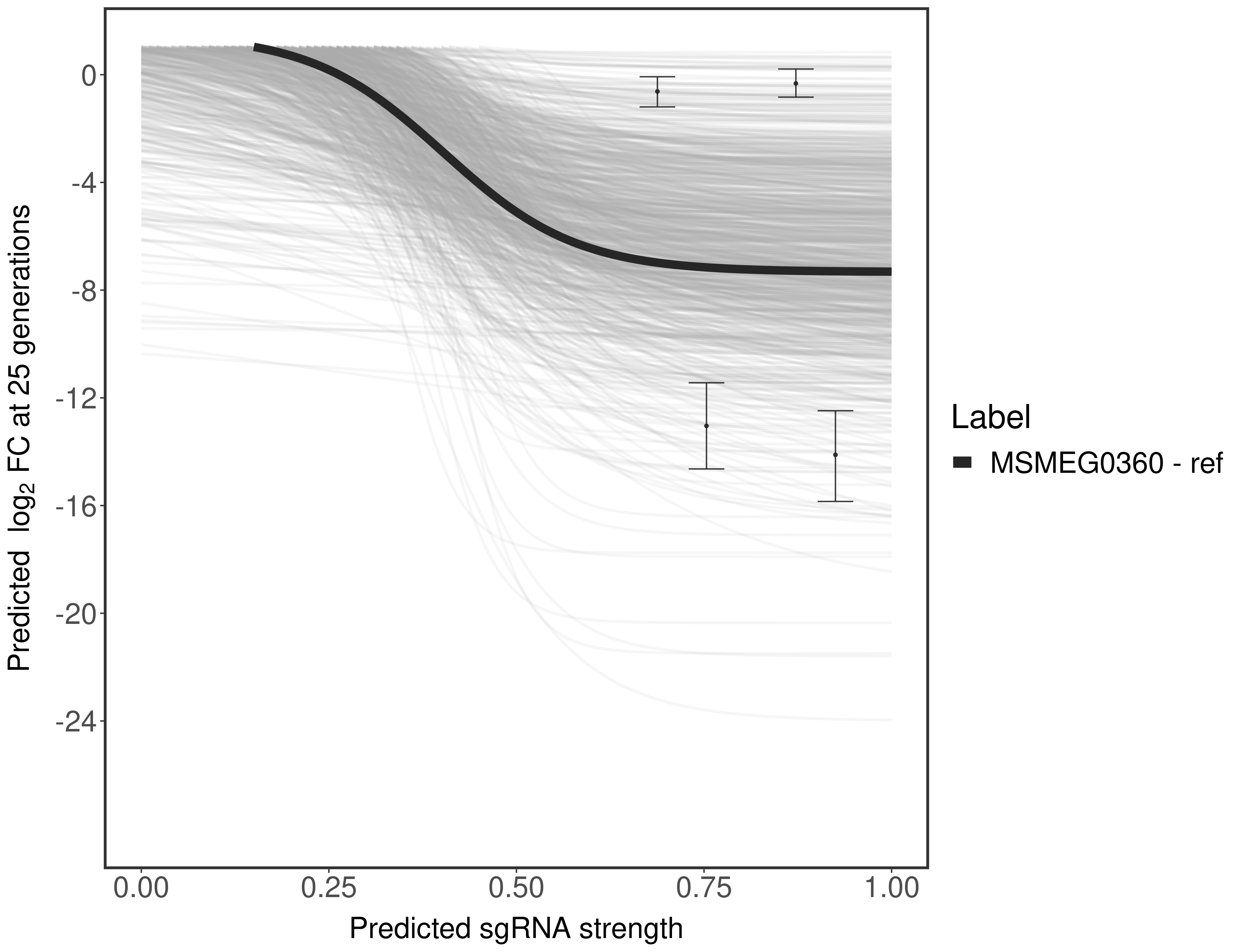 Experiment: We designed an M. tuberculosis CRISPRi library (RLC12) to target all annotated Mtb genes with single guide RNAs (sgRNAs) of varying predicted knockdown efficiencies.