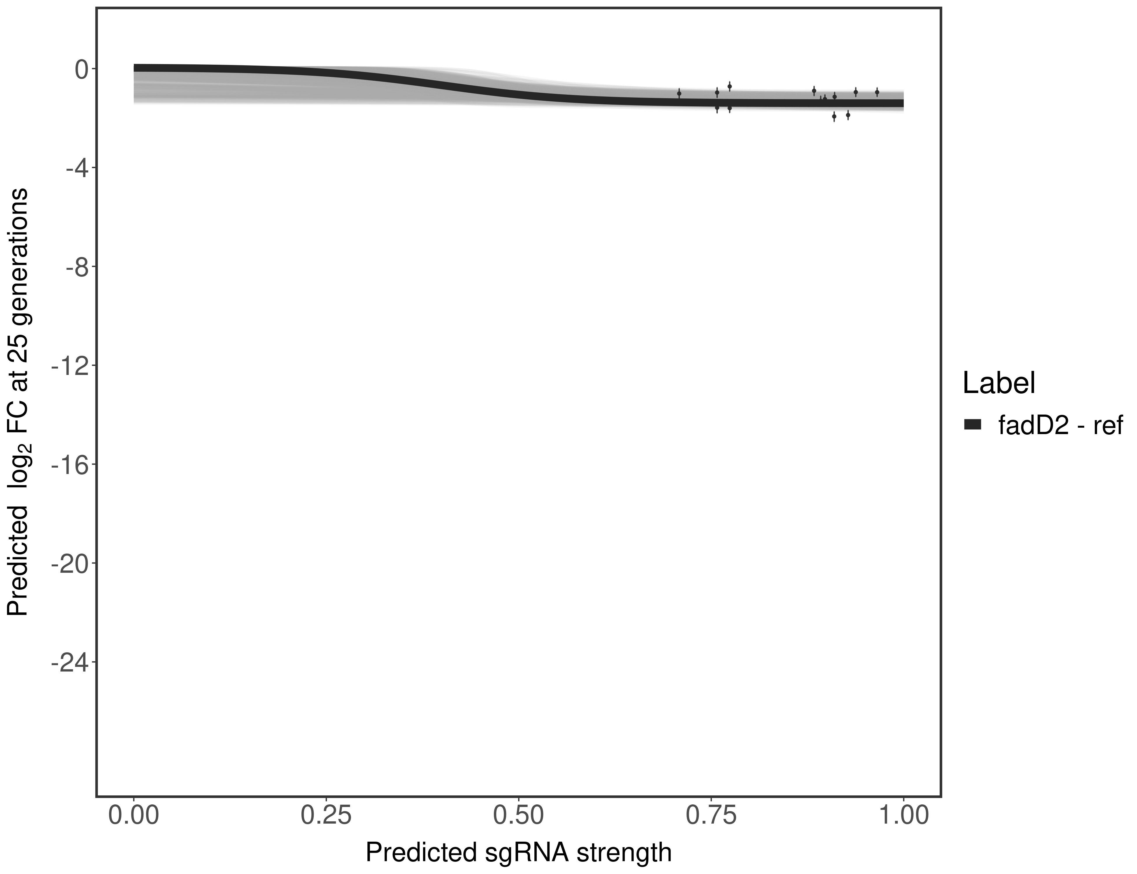 Here, we show sgRNA log2 fold-change values (L2FC) (plus versus minus ATc) over consecutive generations for sgRNAs targeting the gene you selected.