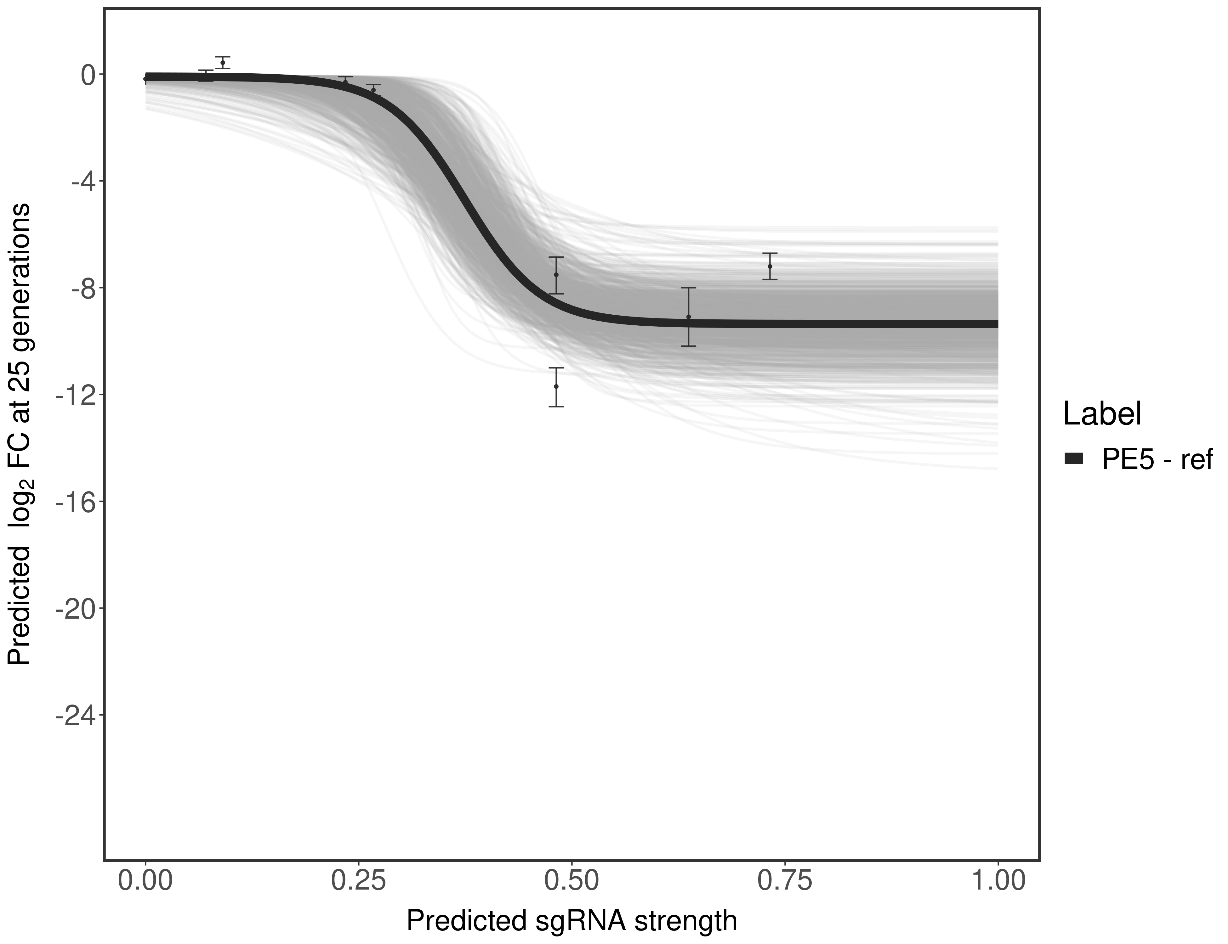 In order to quantify gene vulnerability, data were subsequently analyzed with a hierarchical model at the sgRNA level (two-line model) and gene level (Hill curve). The vulnerability quantification is shown below. [More information]