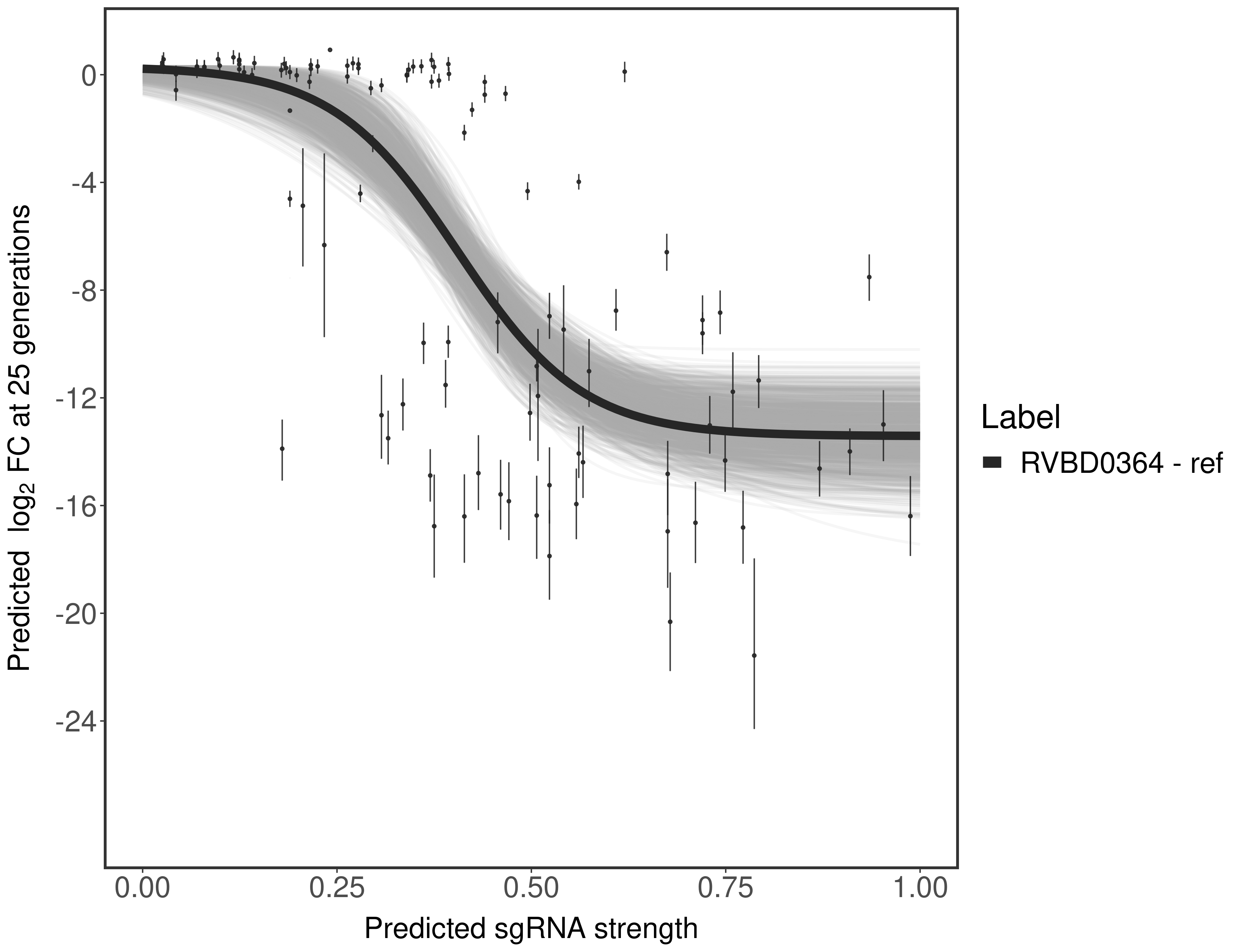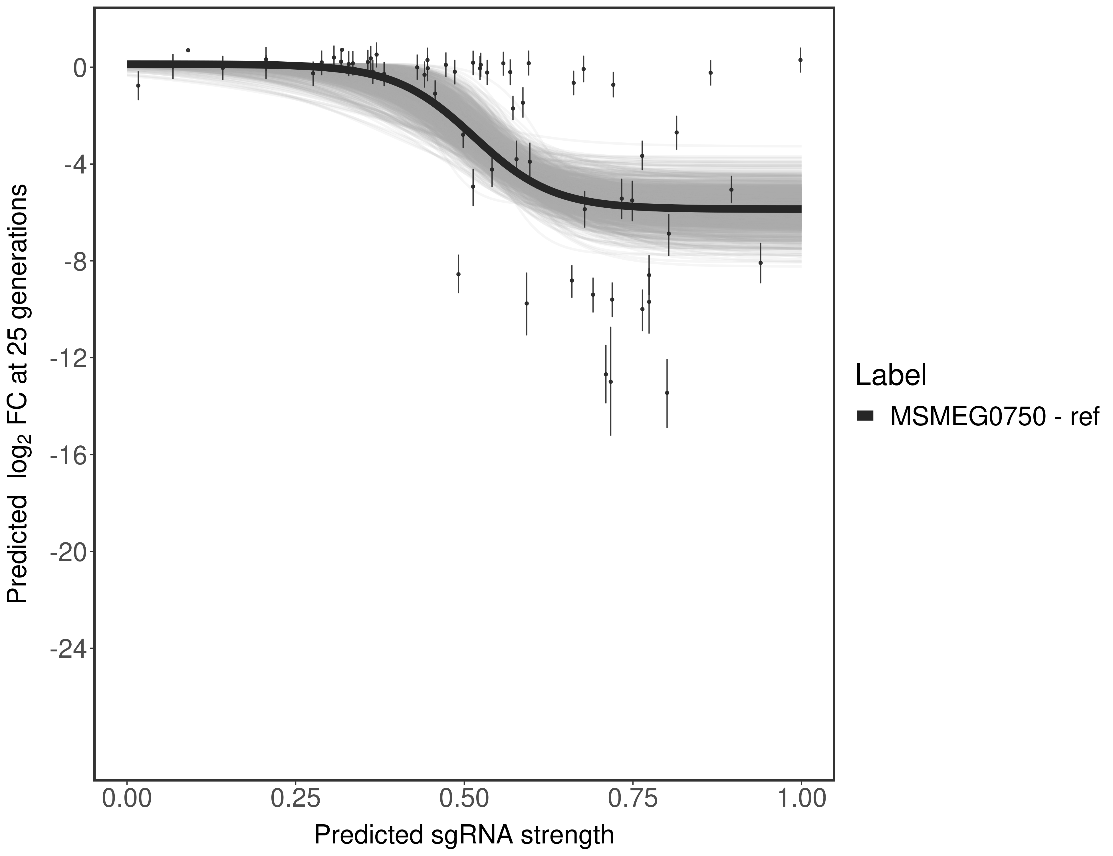Experiment: We designed an M. tuberculosis CRISPRi library (RLC12) to target all annotated Mtb genes with single guide RNAs (sgRNAs) of varying predicted knockdown efficiencies.