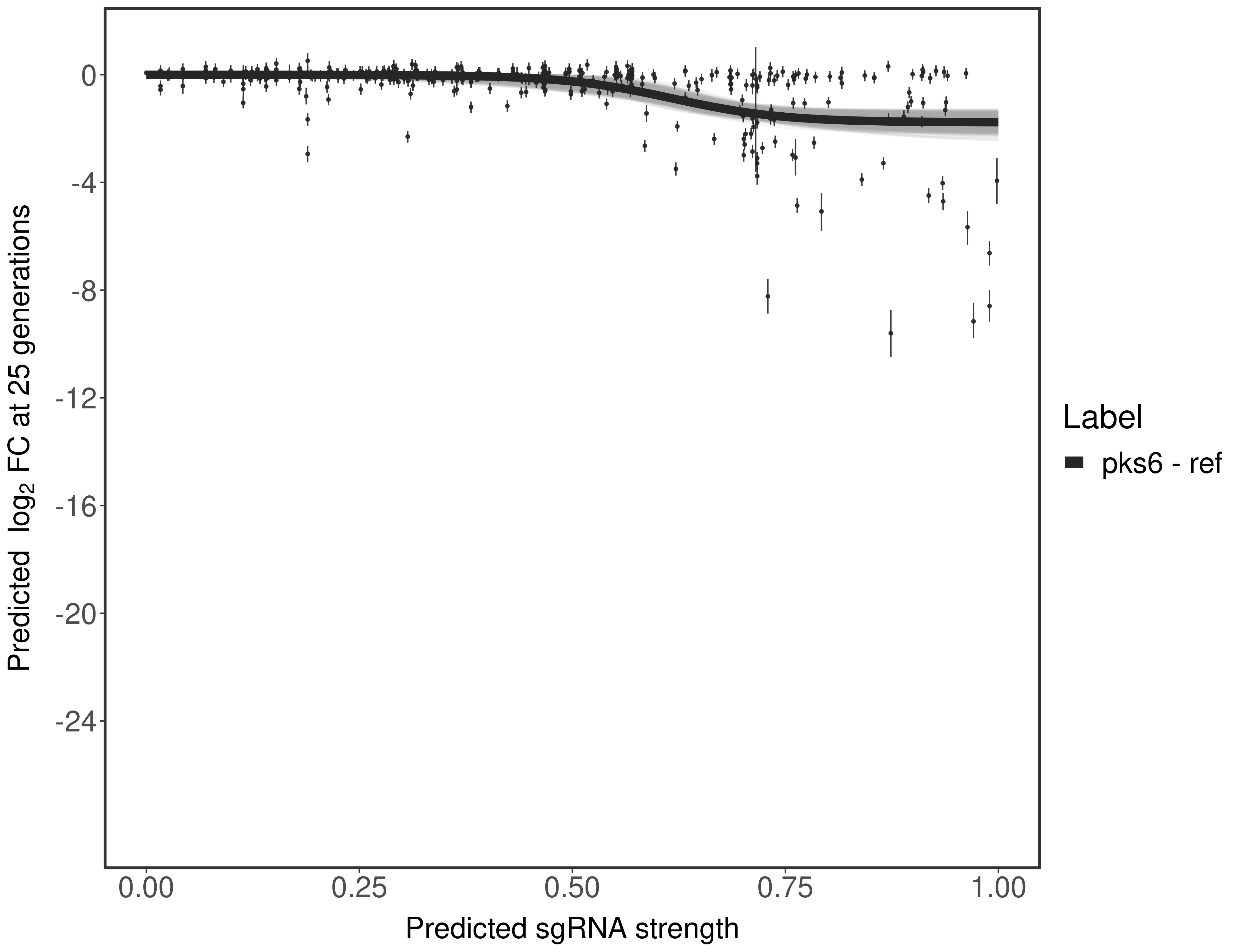 In order to quantify gene vulnerability, data were subsequently analyzed with a hierarchical model at the sgRNA level (two-line model) and gene level (Hill curve). The vulnerability quantification is shown below. [More information]