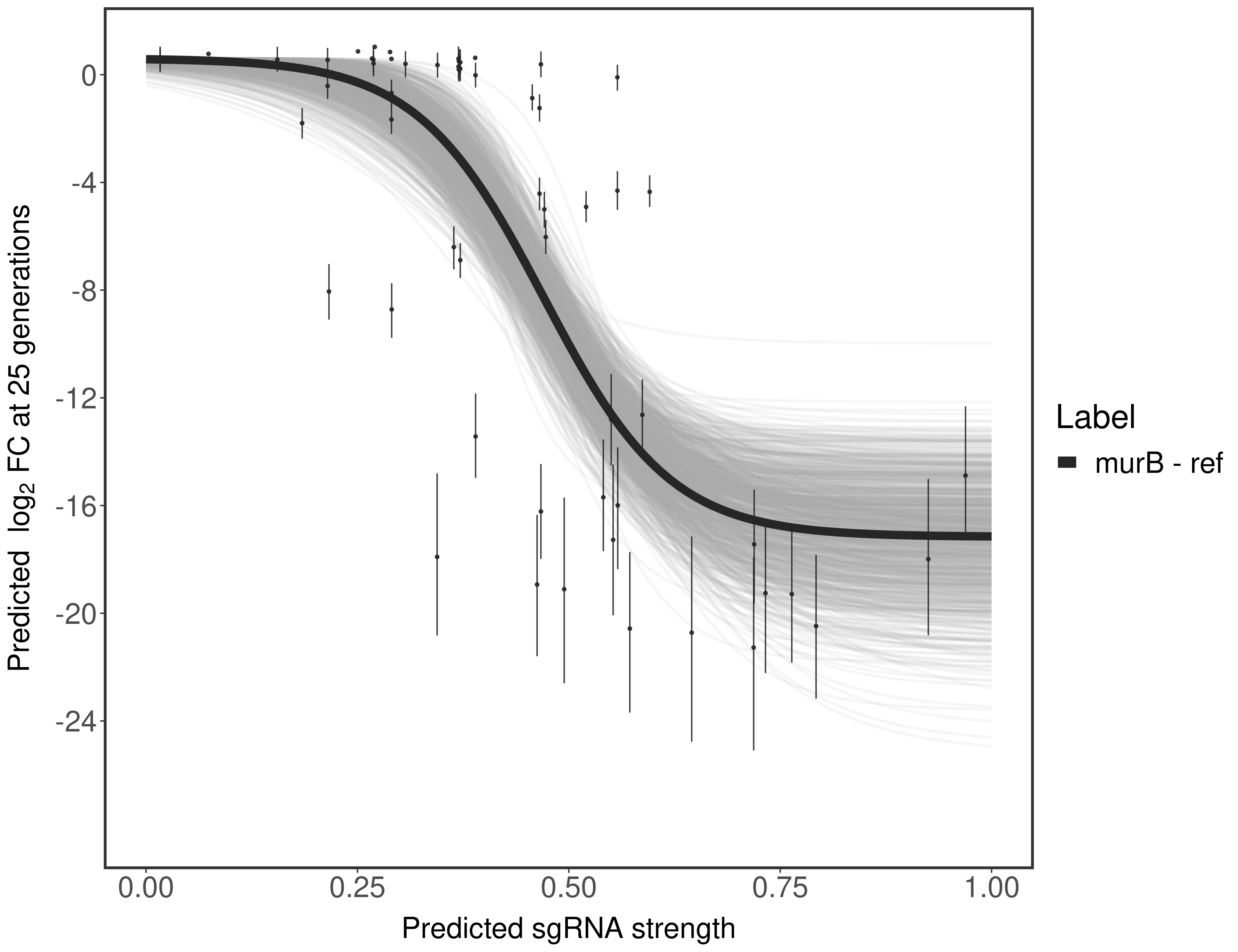In order to quantify gene vulnerability, data were subsequently analyzed with a hierarchical model at the sgRNA level (two-line model) and gene level (Hill curve). The vulnerability quantification is shown below. [More information]