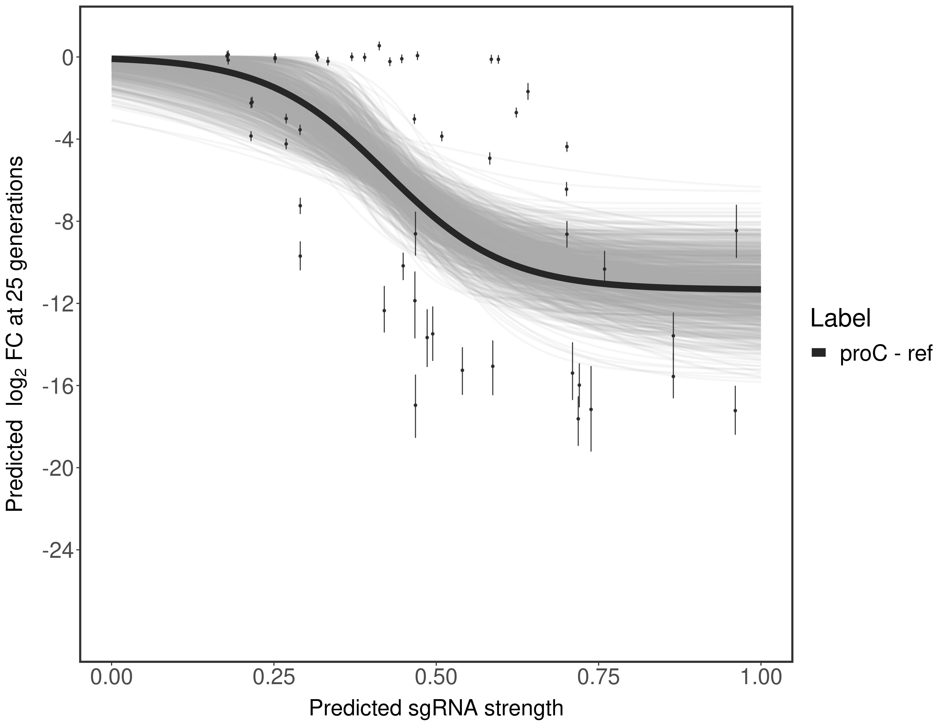 Experiment: We designed an M. tuberculosis CRISPRi library (RLC12) to target all annotated Mtb genes with single guide RNAs (sgRNAs) of varying predicted knockdown efficiencies.