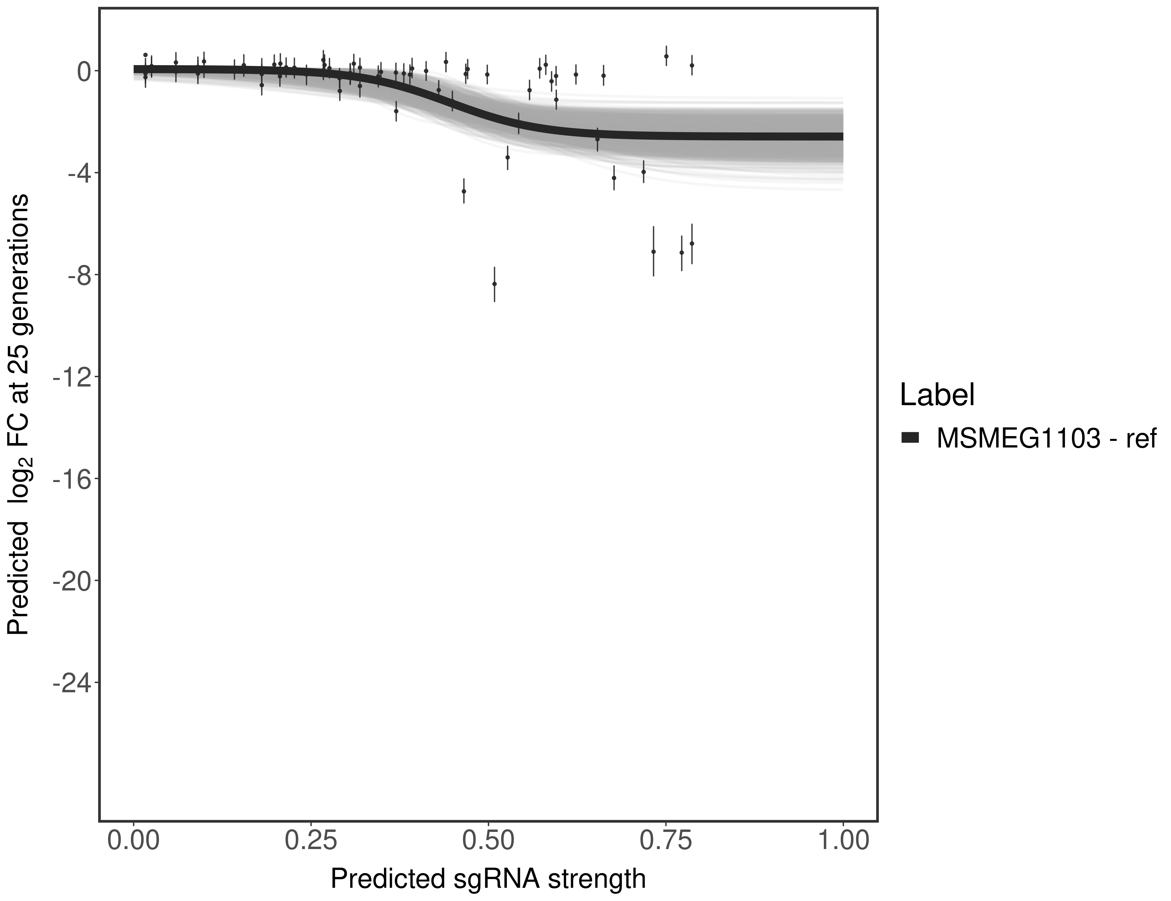 Experiment: We designed an M. tuberculosis CRISPRi library (RLC12) to target all annotated Mtb genes with single guide RNAs (sgRNAs) of varying predicted knockdown efficiencies.