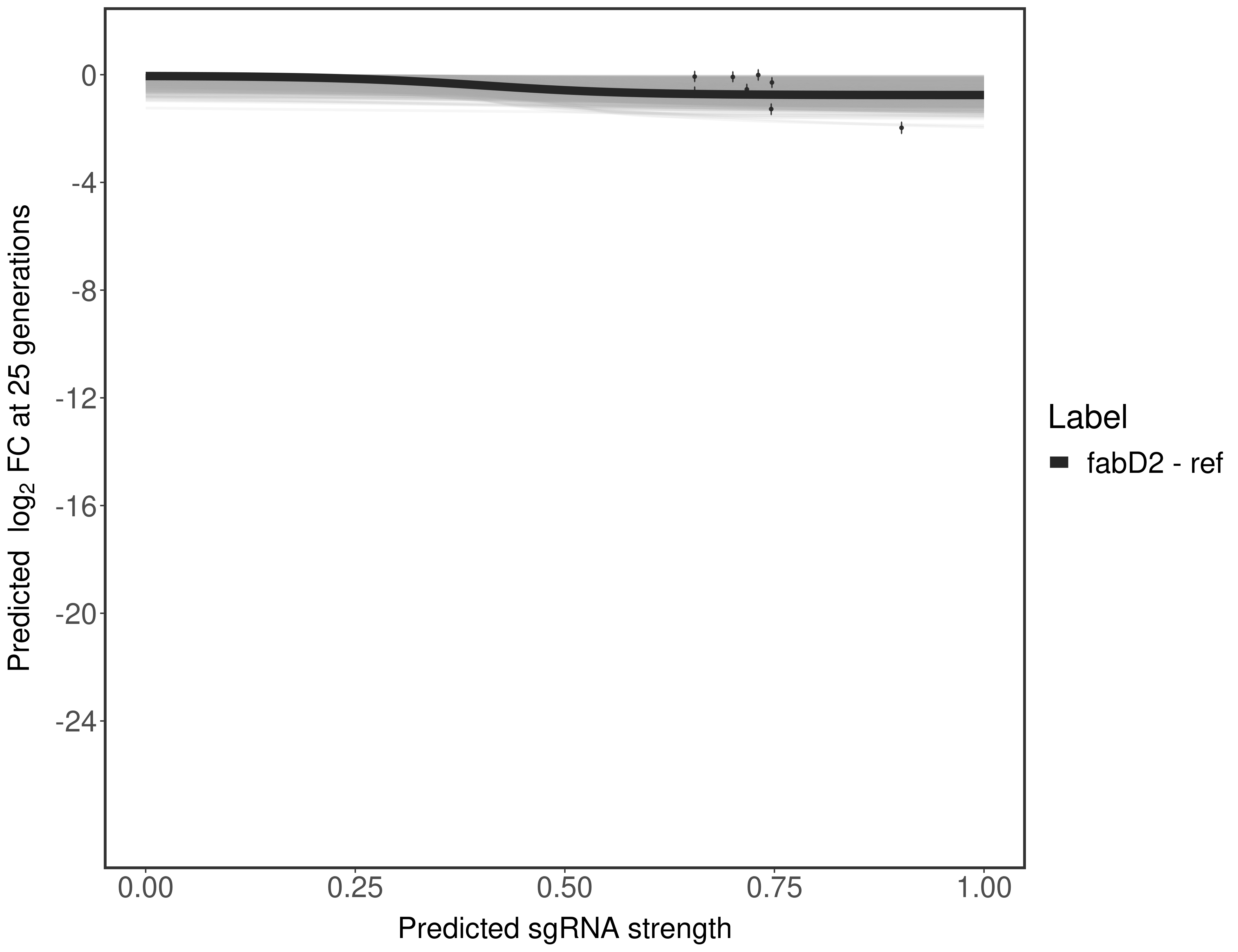 Here, we show sgRNA log2 fold-change values (L2FC) (plus versus minus ATc) over consecutive generations for sgRNAs targeting the gene you selected.
