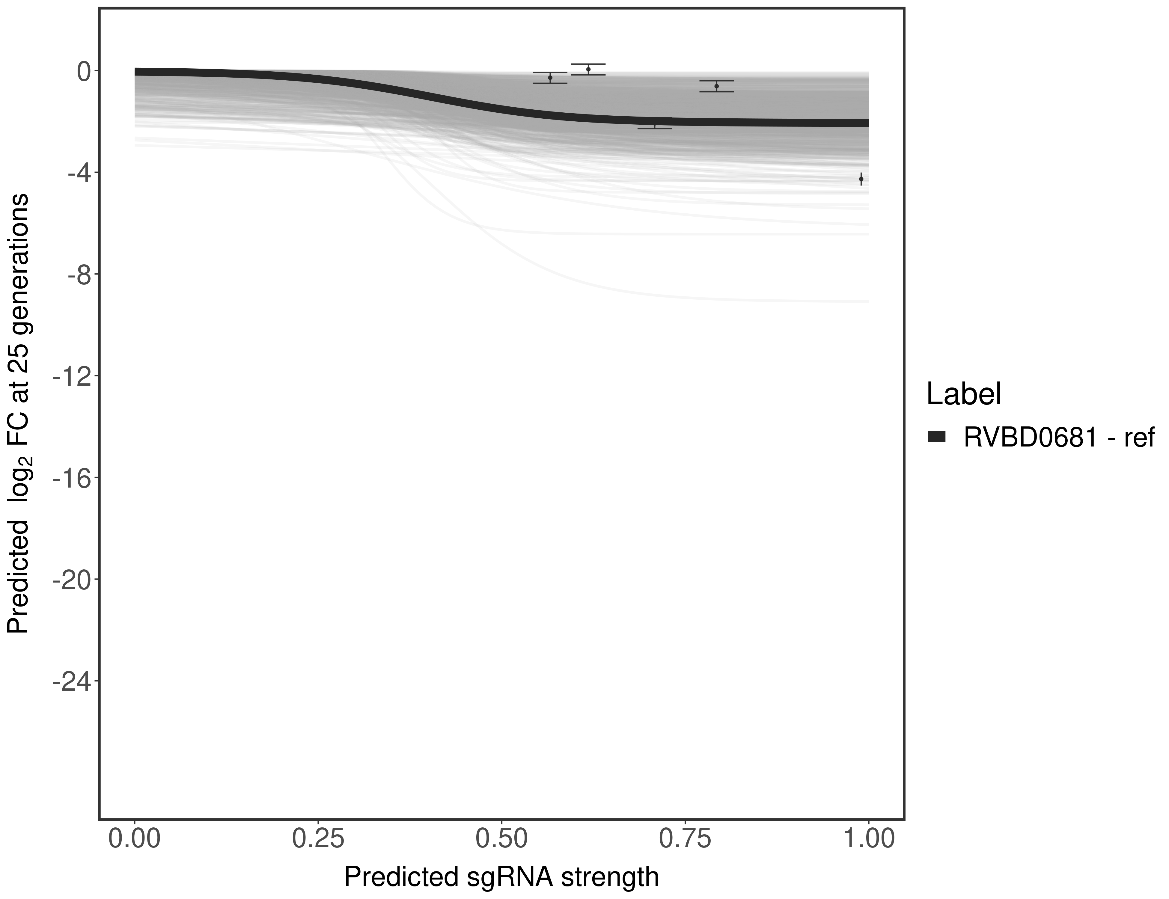 Here, we show sgRNA log2 fold-change values (L2FC) (plus versus minus ATc) over consecutive generations for sgRNAs targeting the gene you selected.
