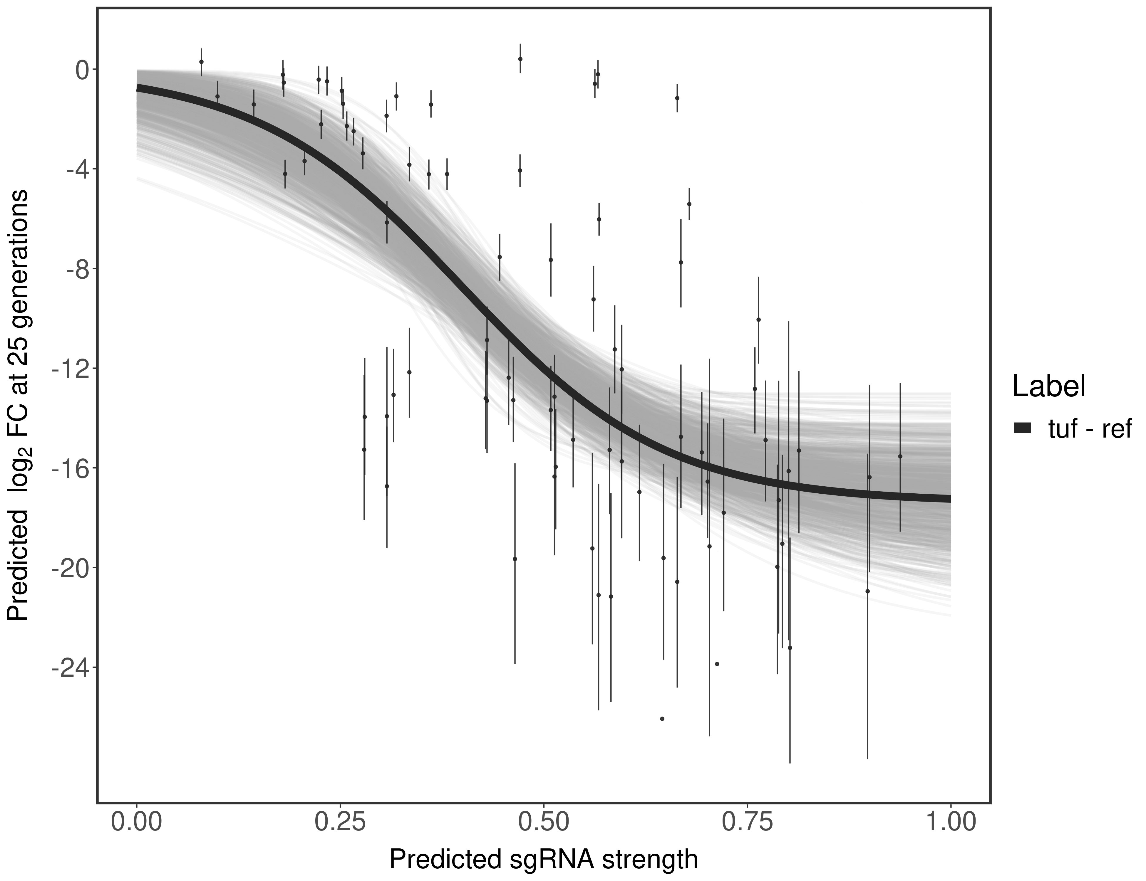 Experiment: We designed an M. tuberculosis CRISPRi library (RLC12) to target all annotated Mtb genes with single guide RNAs (sgRNAs) of varying predicted knockdown efficiencies.