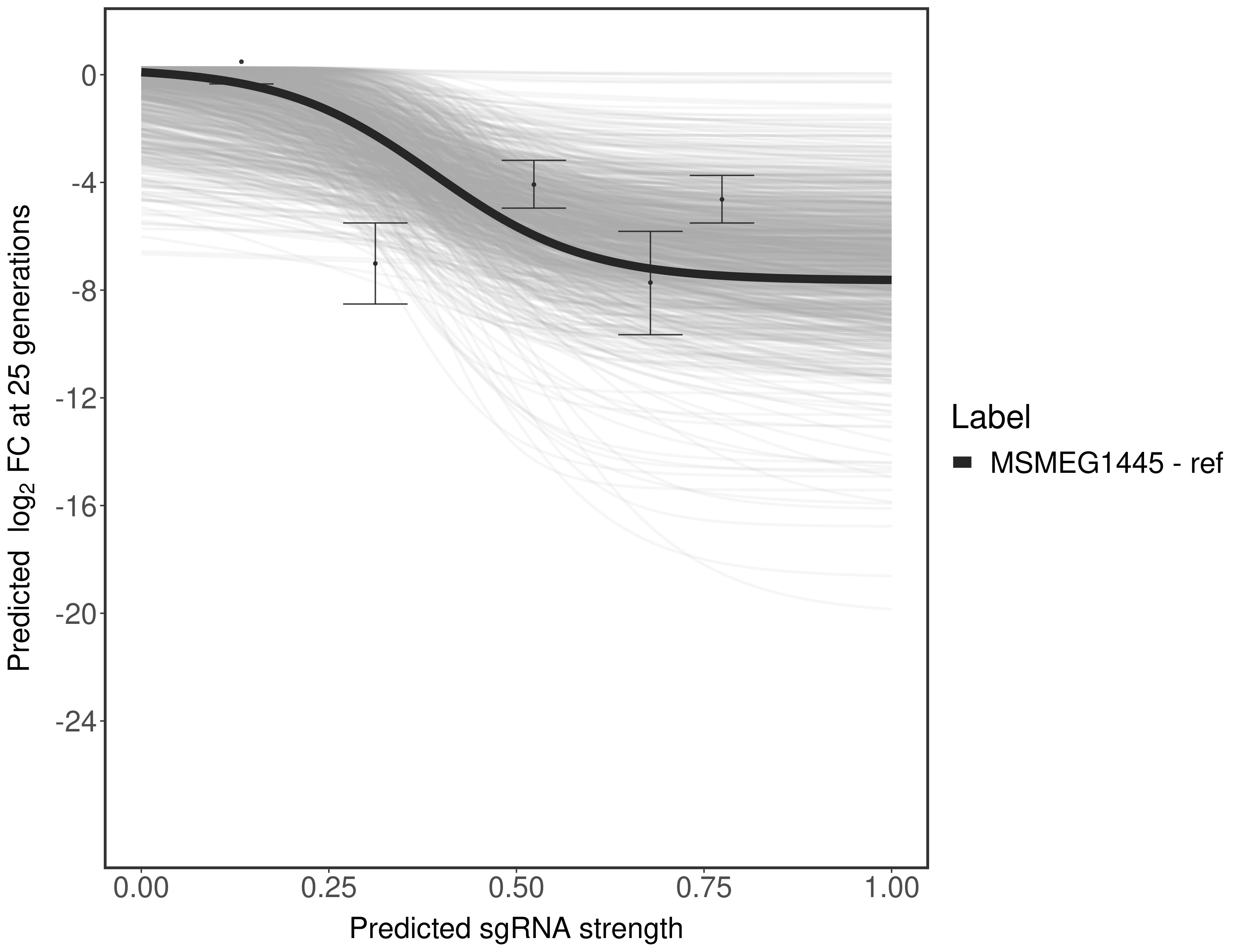 Experiment: We designed an M. tuberculosis CRISPRi library (RLC12) to target all annotated Mtb genes with single guide RNAs (sgRNAs) of varying predicted knockdown efficiencies.