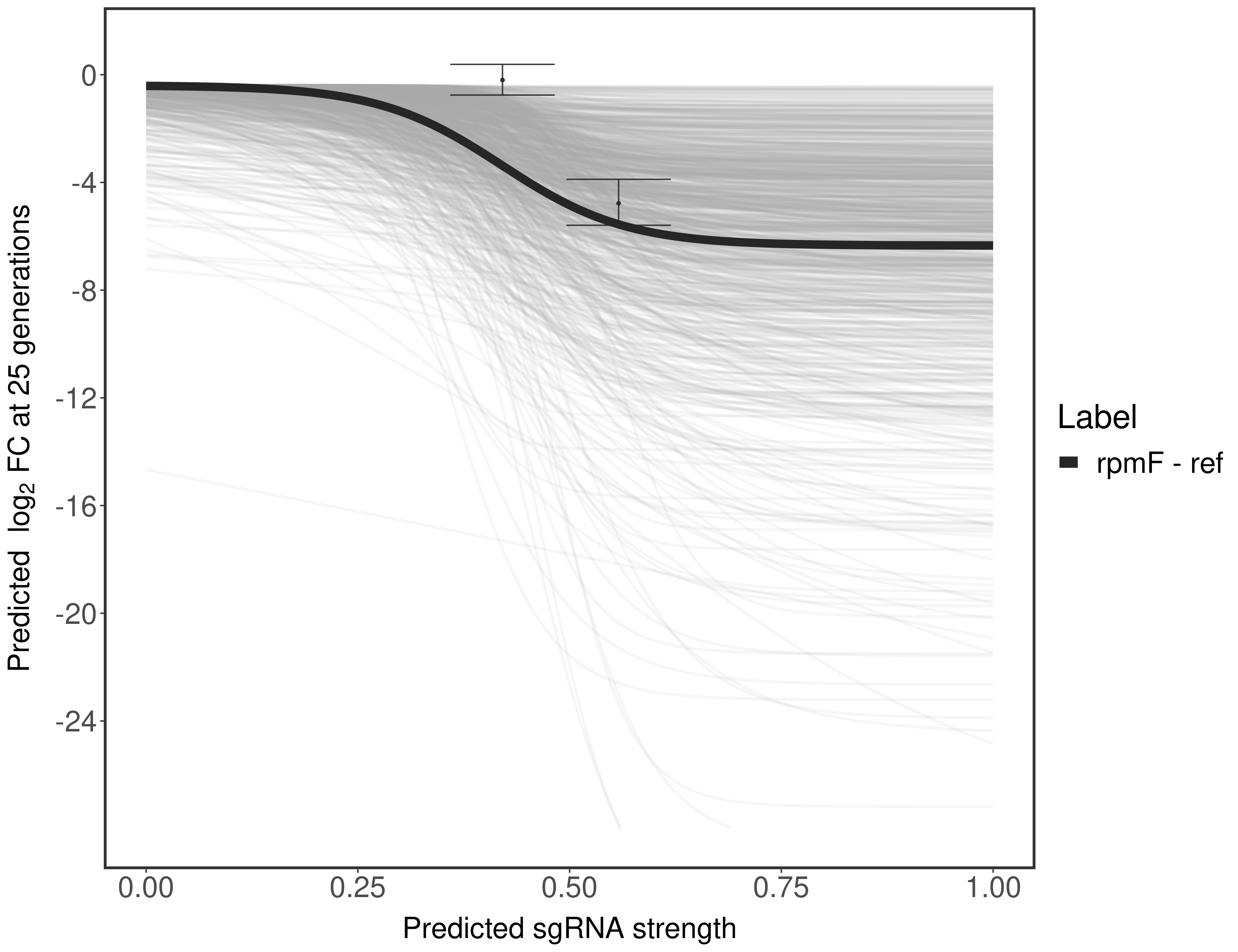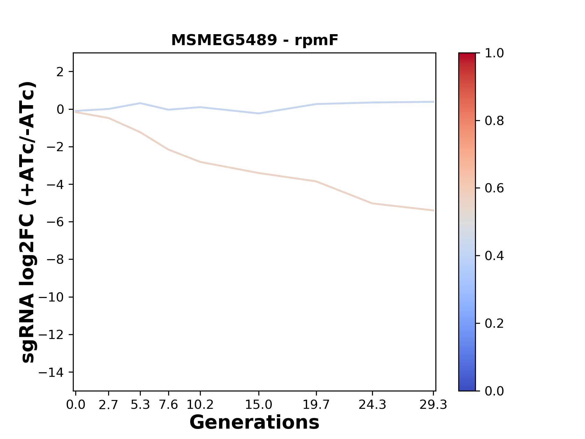 Here, we show sgRNA log2 fold-change values (L2FC) (plus versus minus ATc) over consecutive generations for sgRNAs targeting the gene you selected.