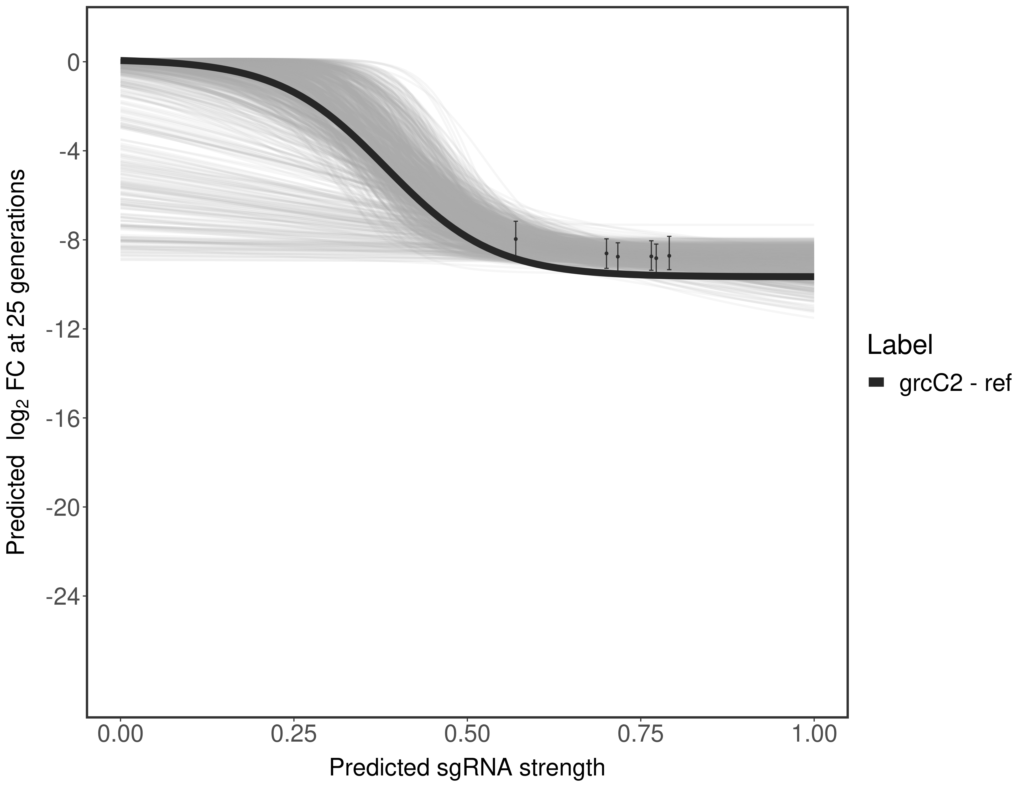 In order to quantify gene vulnerability, data were subsequently analyzed with a hierarchical model at the sgRNA level (two-line model) and gene level (Hill curve). The vulnerability quantification is shown below. [More information]
