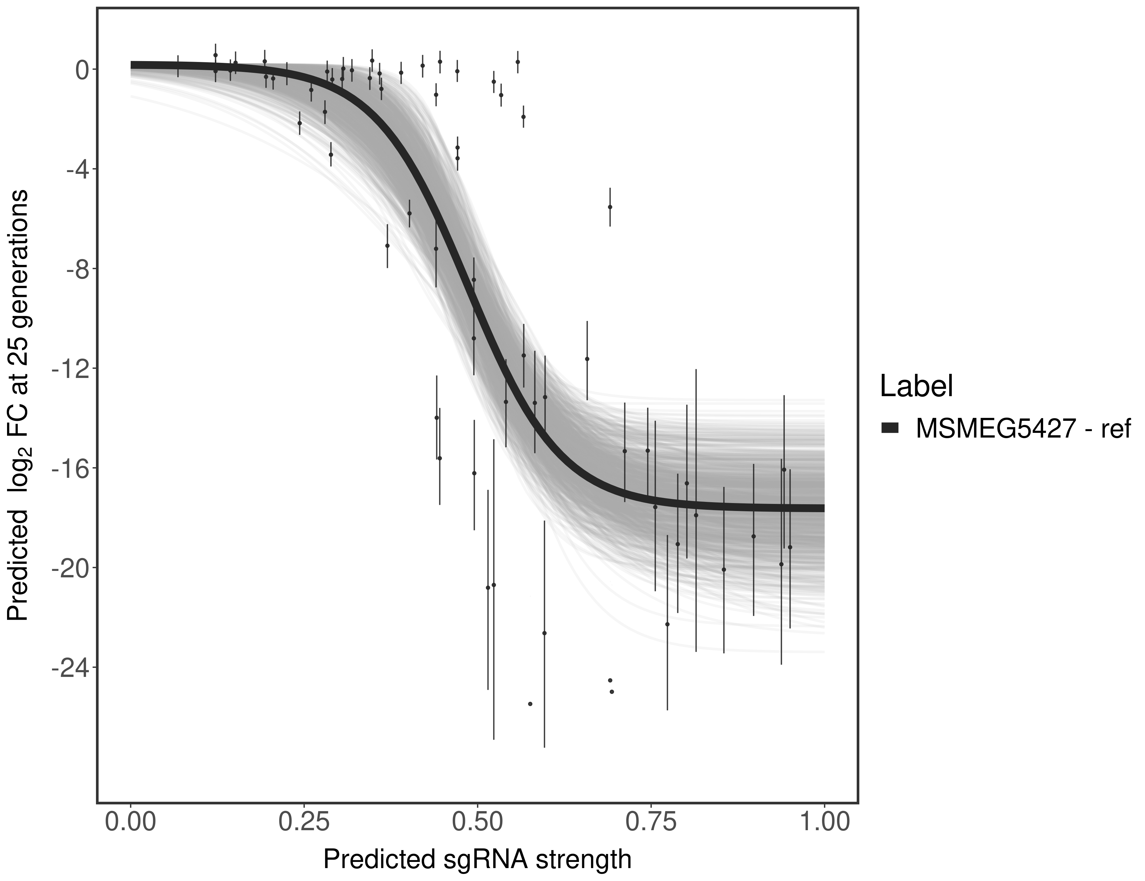 Experiment: We designed an M. tuberculosis CRISPRi library (RLC12) to target all annotated Mtb genes with single guide RNAs (sgRNAs) of varying predicted knockdown efficiencies.
