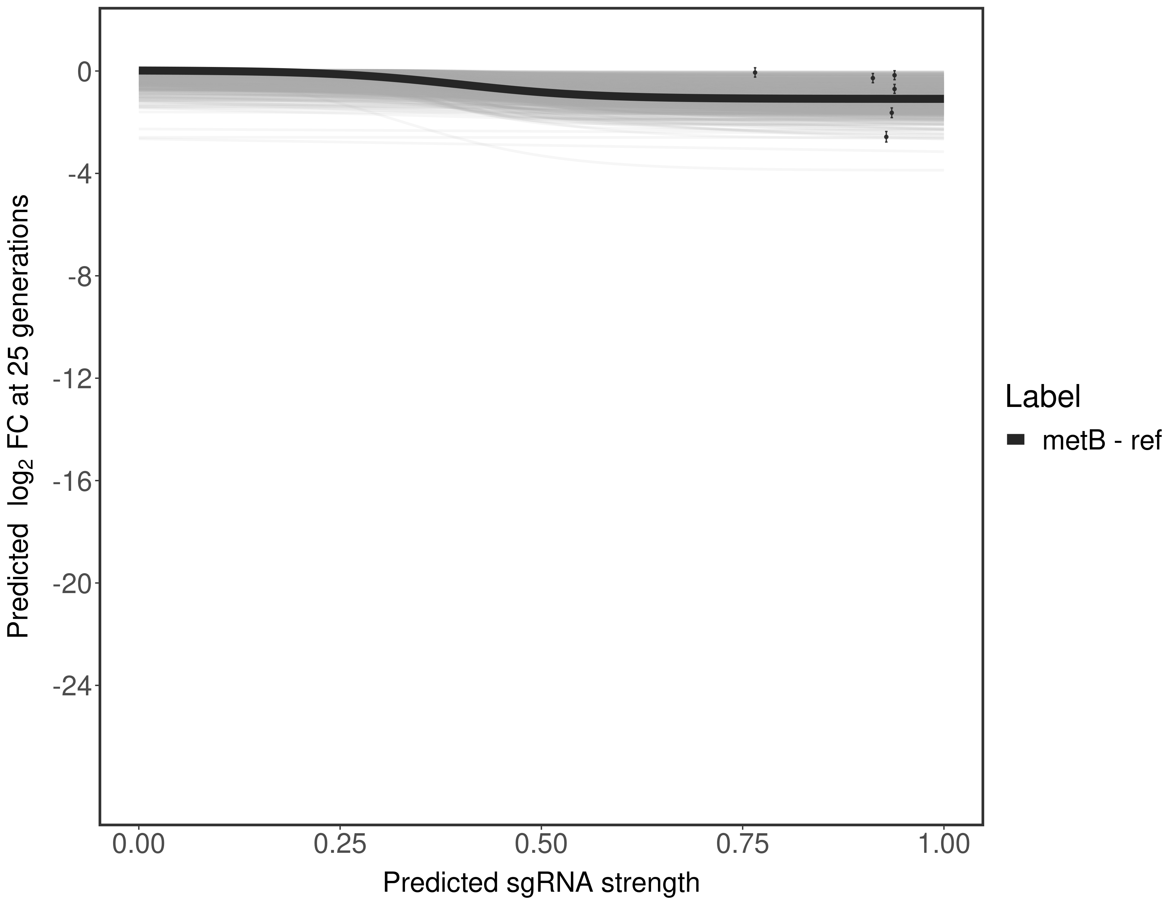 Here, we show sgRNA log2 fold-change values (L2FC) (plus versus minus ATc) over consecutive generations for sgRNAs targeting the gene you selected.
