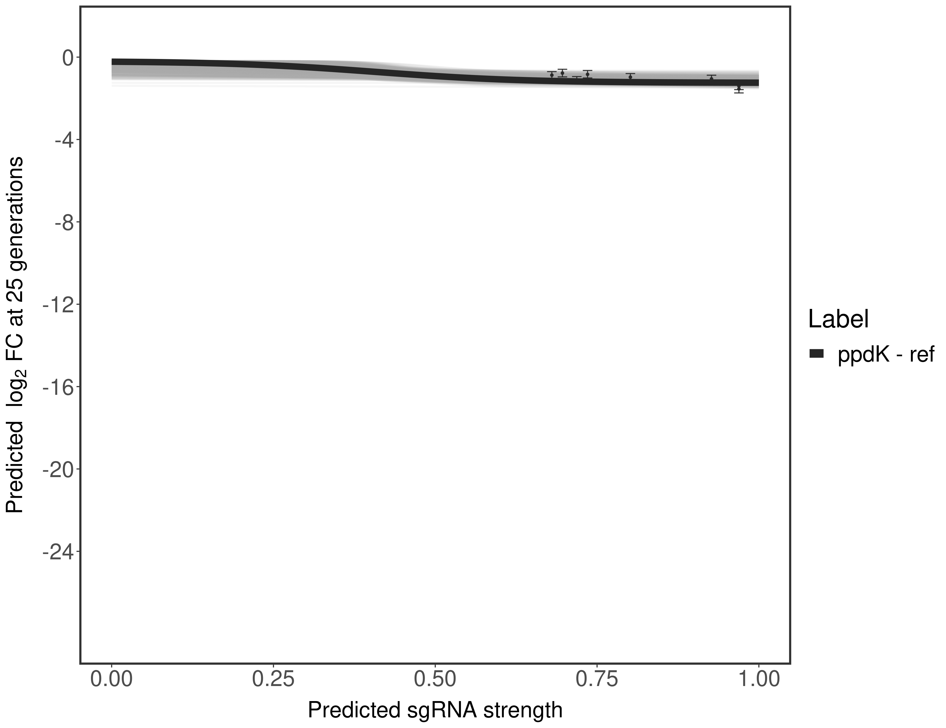 Here, we show sgRNA log2 fold-change values (L2FC) (plus versus minus ATc) over consecutive generations for sgRNAs targeting the gene you selected.