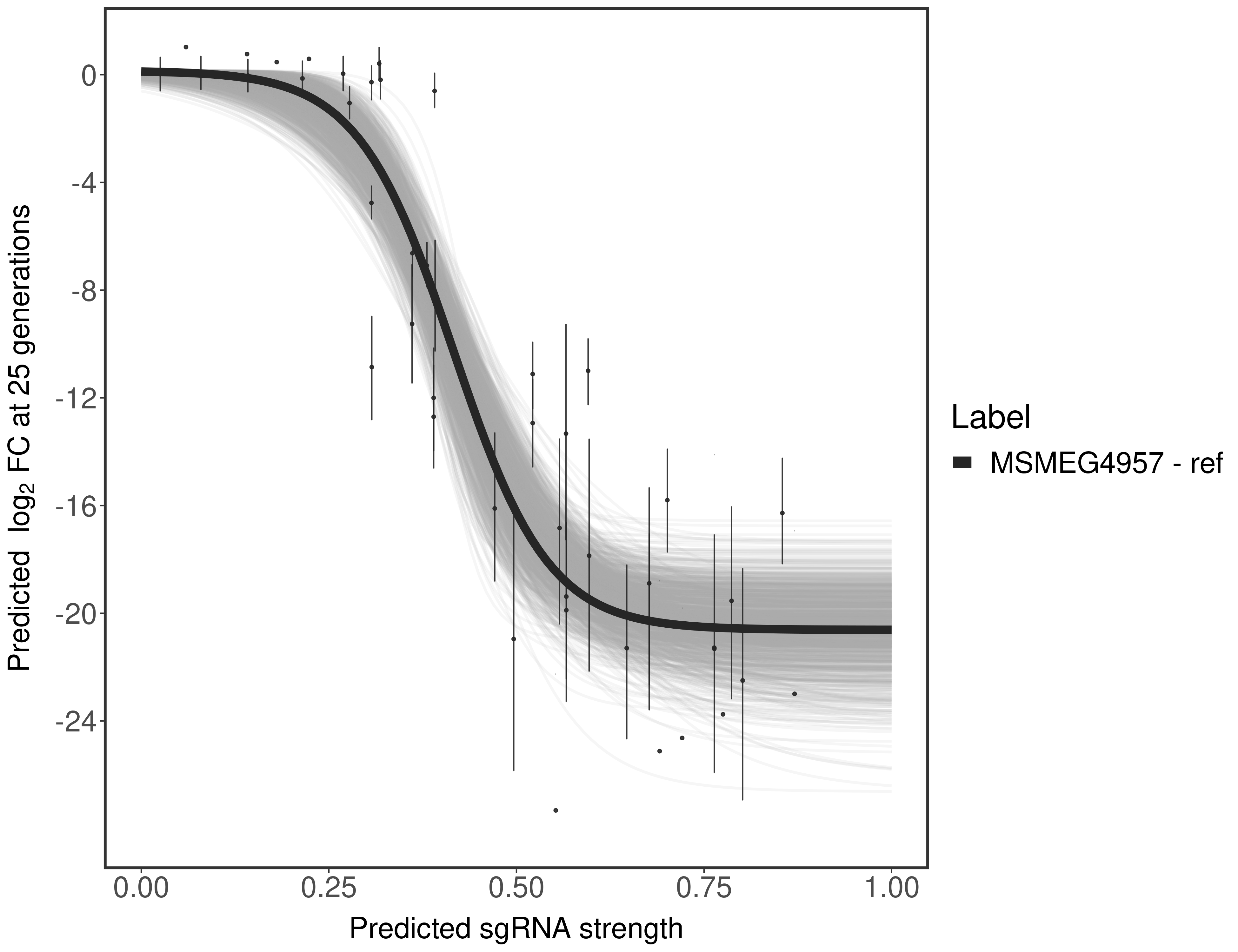 Experiment: We designed an M. tuberculosis CRISPRi library (RLC12) to target all annotated Mtb genes with single guide RNAs (sgRNAs) of varying predicted knockdown efficiencies.