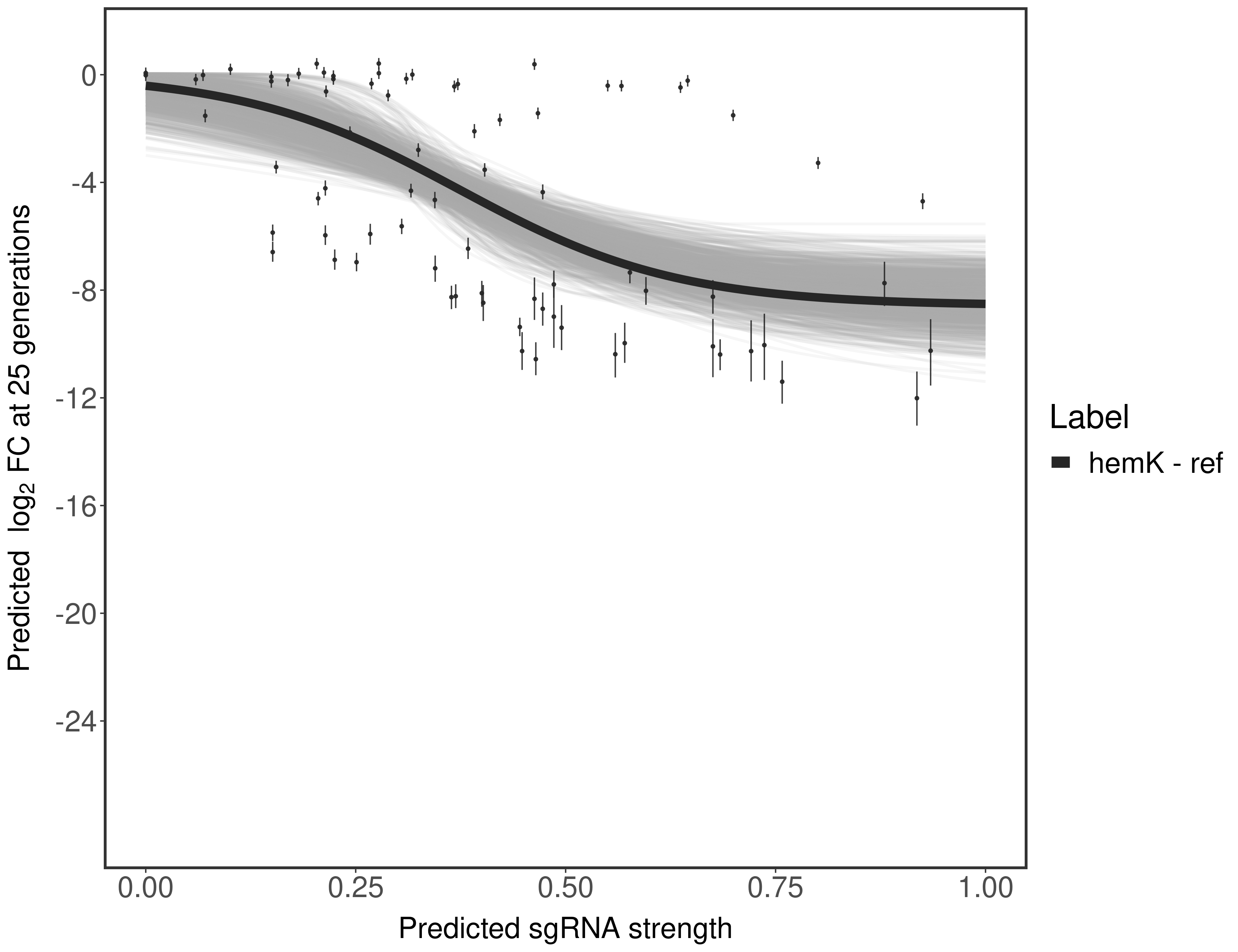 In order to quantify gene vulnerability, data were subsequently analyzed with a hierarchical model at the sgRNA level (two-line model) and gene level (Hill curve). The vulnerability quantification is shown below. [More information]