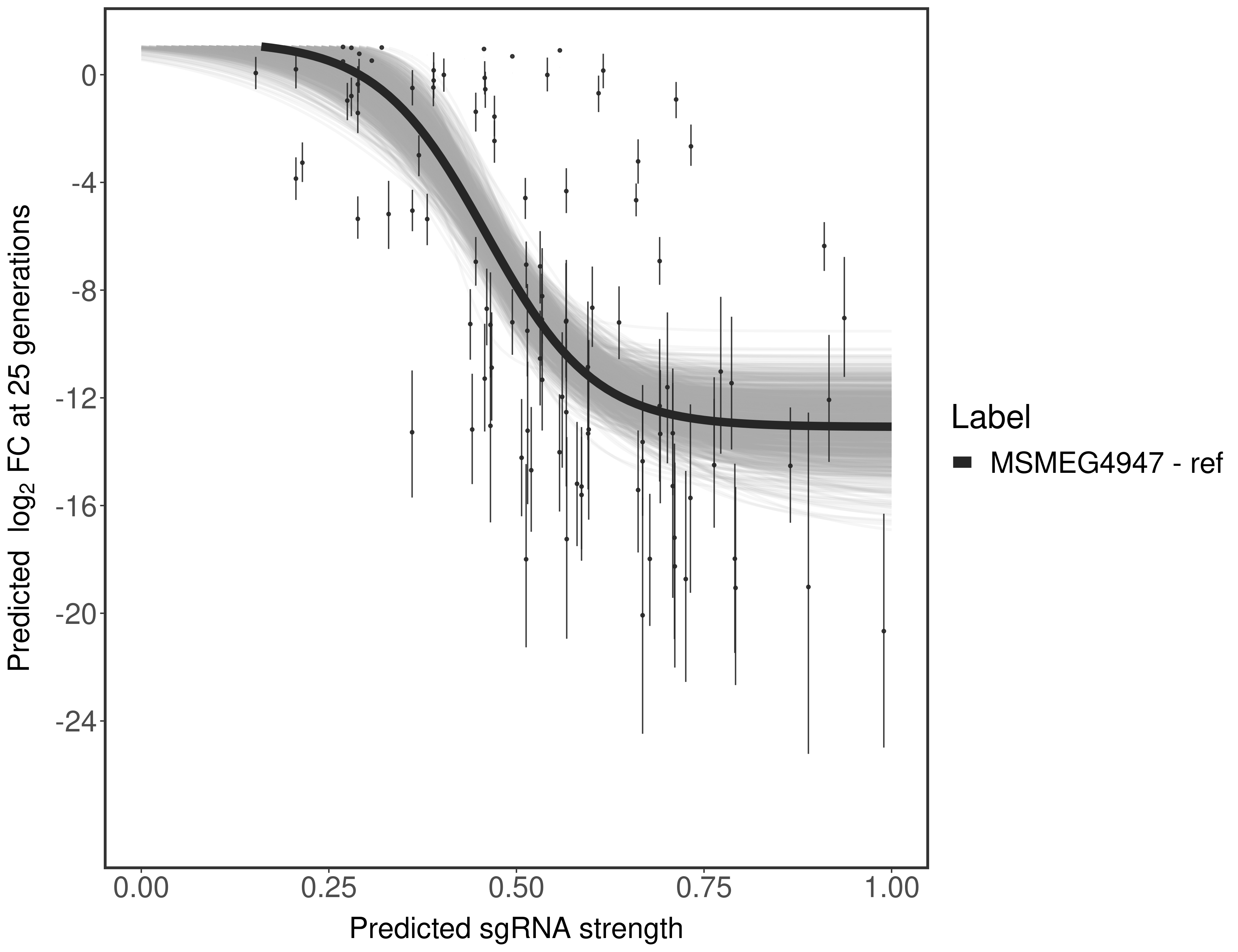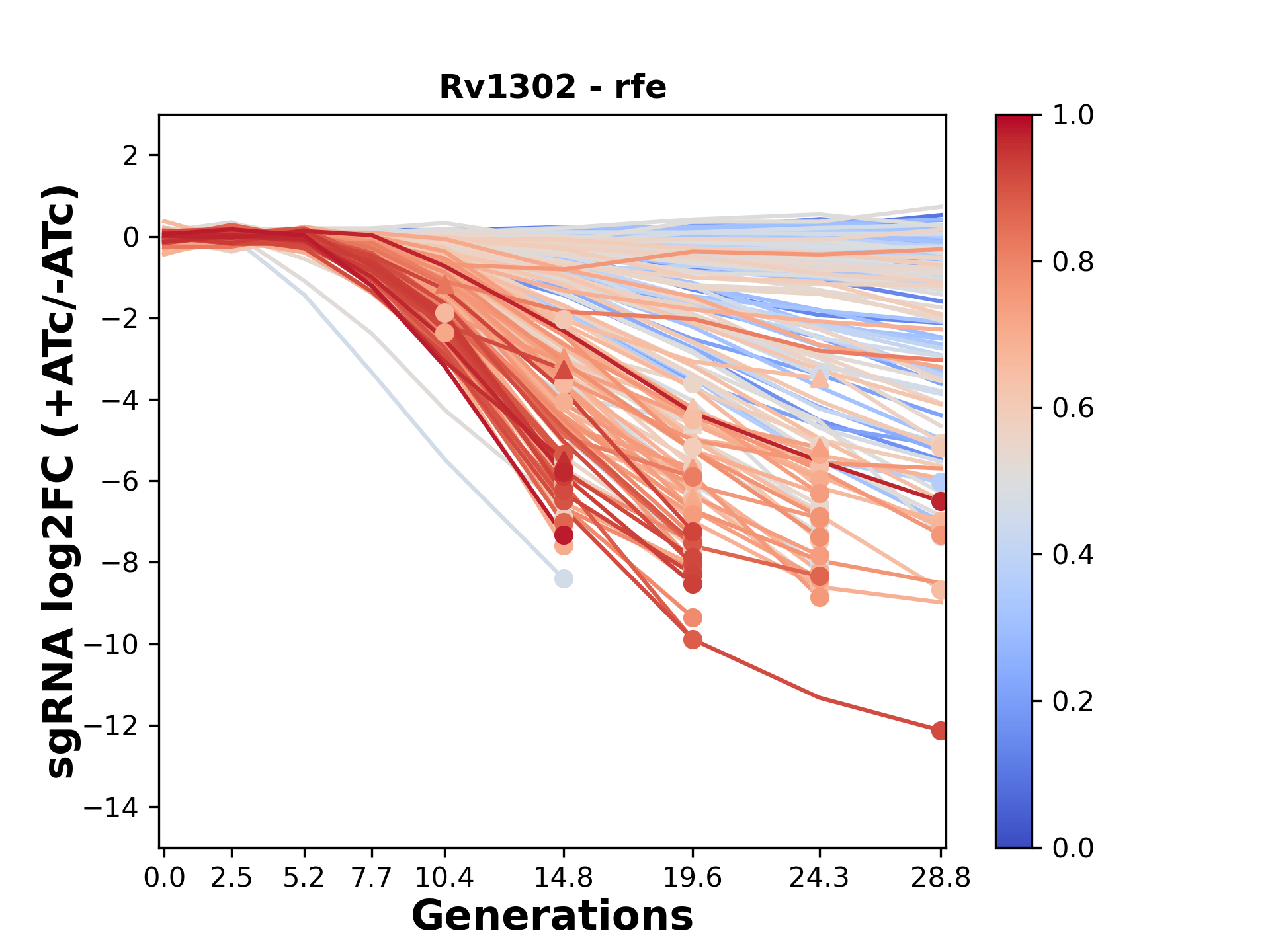 Experiment: We designed an M. tuberculosis CRISPRi library (RLC12) to target all annotated Mtb genes with single guide RNAs (sgRNAs) of varying predicted knockdown efficiencies.
