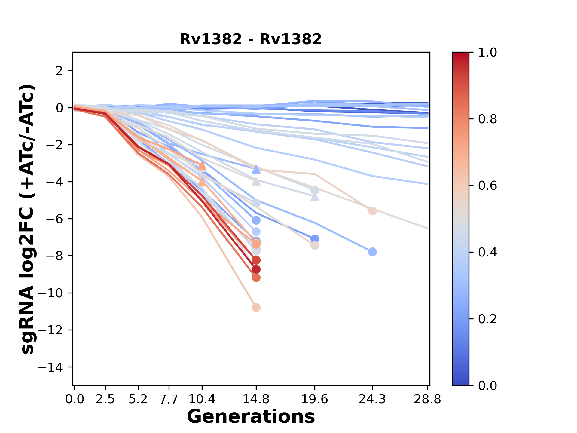 Experiment: We designed an M. tuberculosis CRISPRi library (RLC12) to target all annotated Mtb genes with single guide RNAs (sgRNAs) of varying predicted knockdown efficiencies.