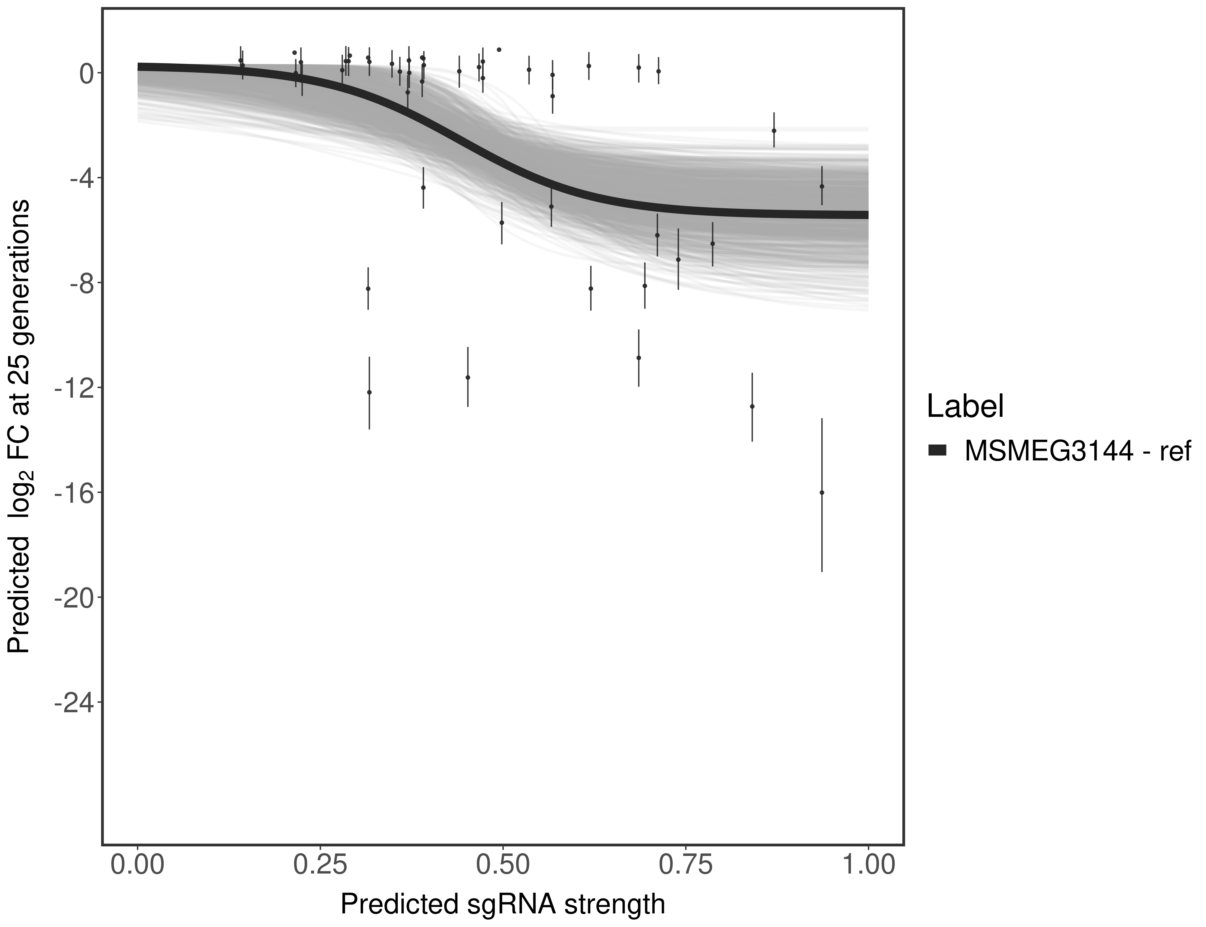 Experiment: We designed an M. tuberculosis CRISPRi library (RLC12) to target all annotated Mtb genes with single guide RNAs (sgRNAs) of varying predicted knockdown efficiencies.