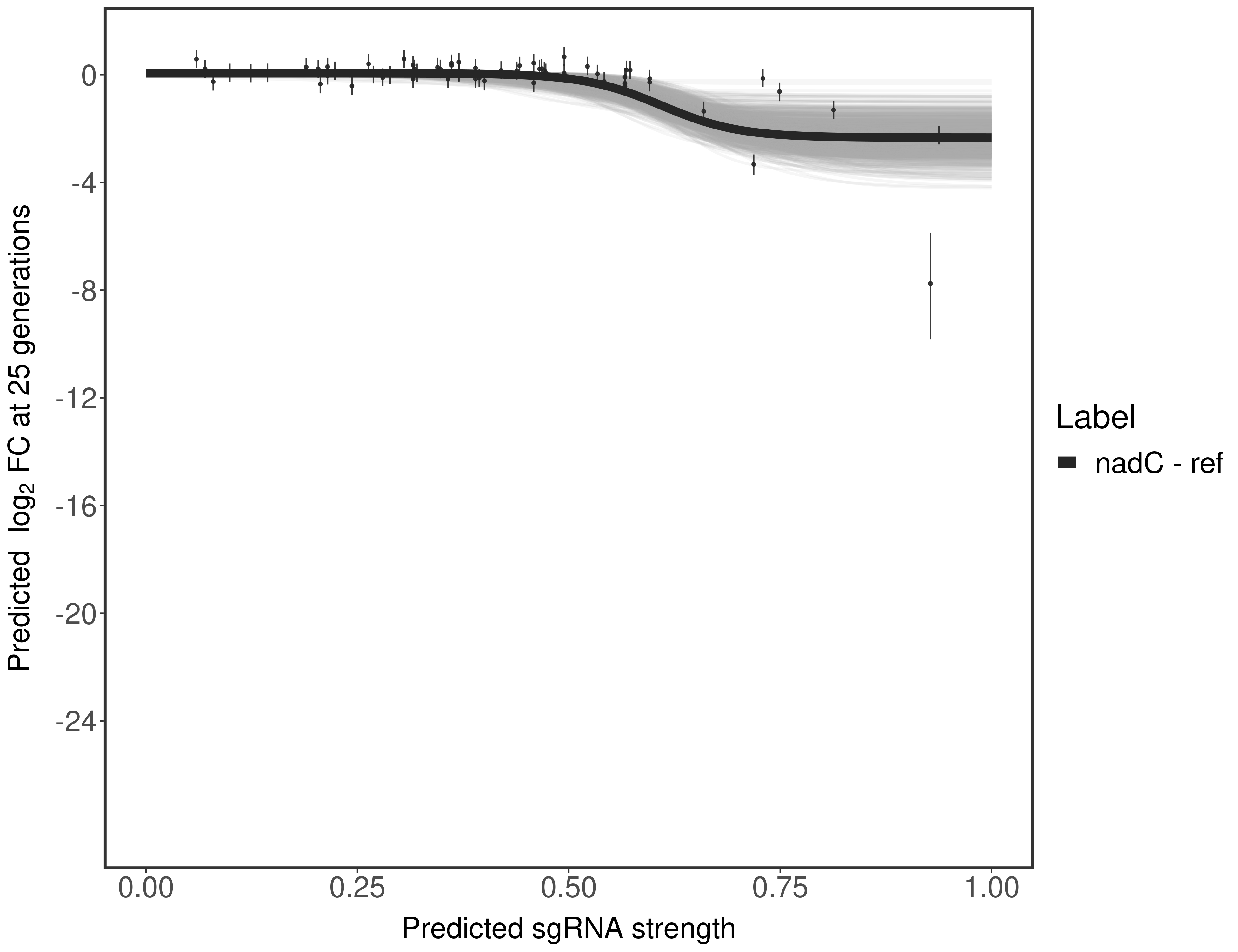In order to quantify gene vulnerability, data were subsequently analyzed with a hierarchical model at the sgRNA level (two-line model) and gene level (Hill curve). The vulnerability quantification is shown below. [More information]