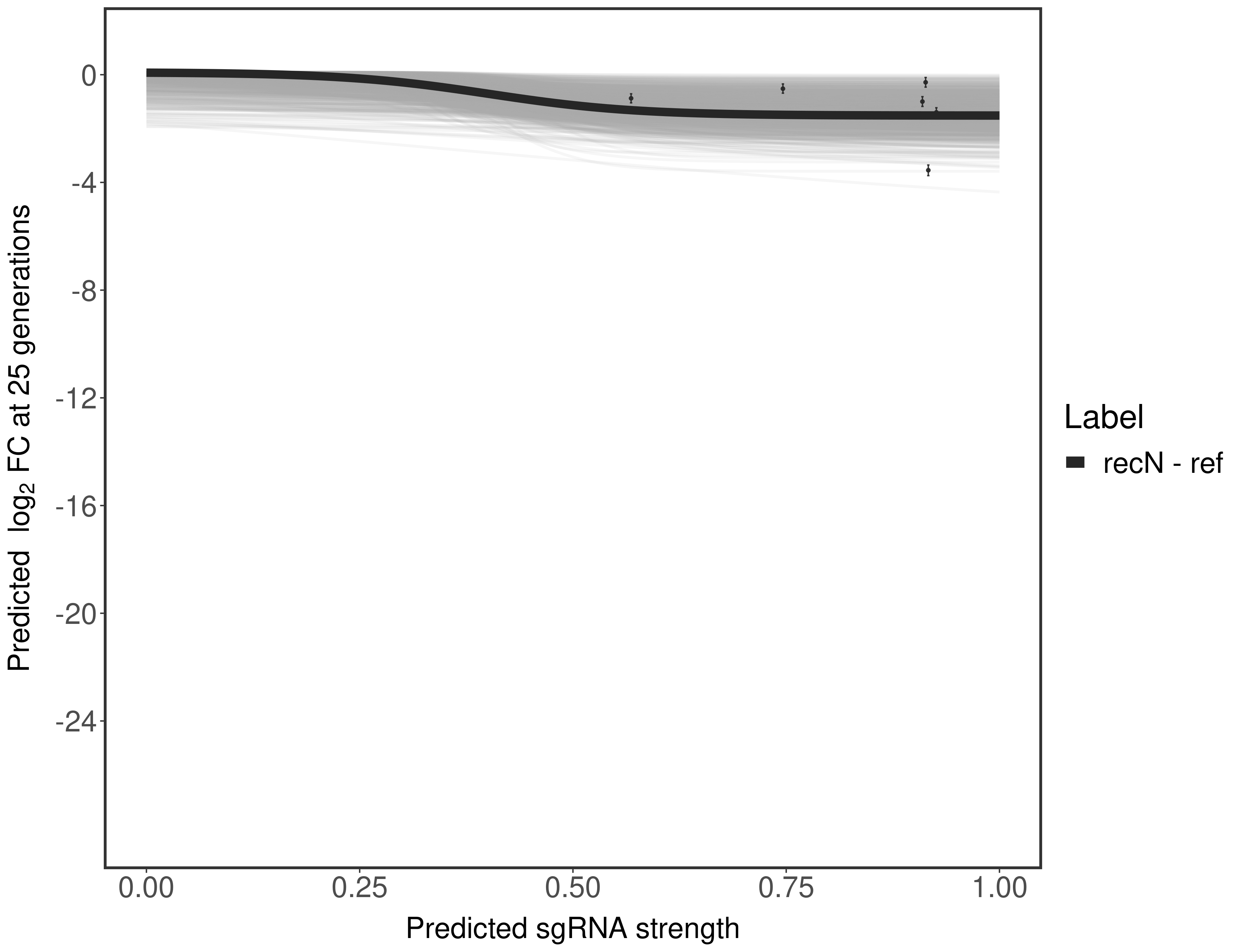 In order to quantify gene vulnerability, data were subsequently analyzed with a hierarchical model at the sgRNA level (two-line model) and gene level (Hill curve). The vulnerability quantification is shown below. [More information]