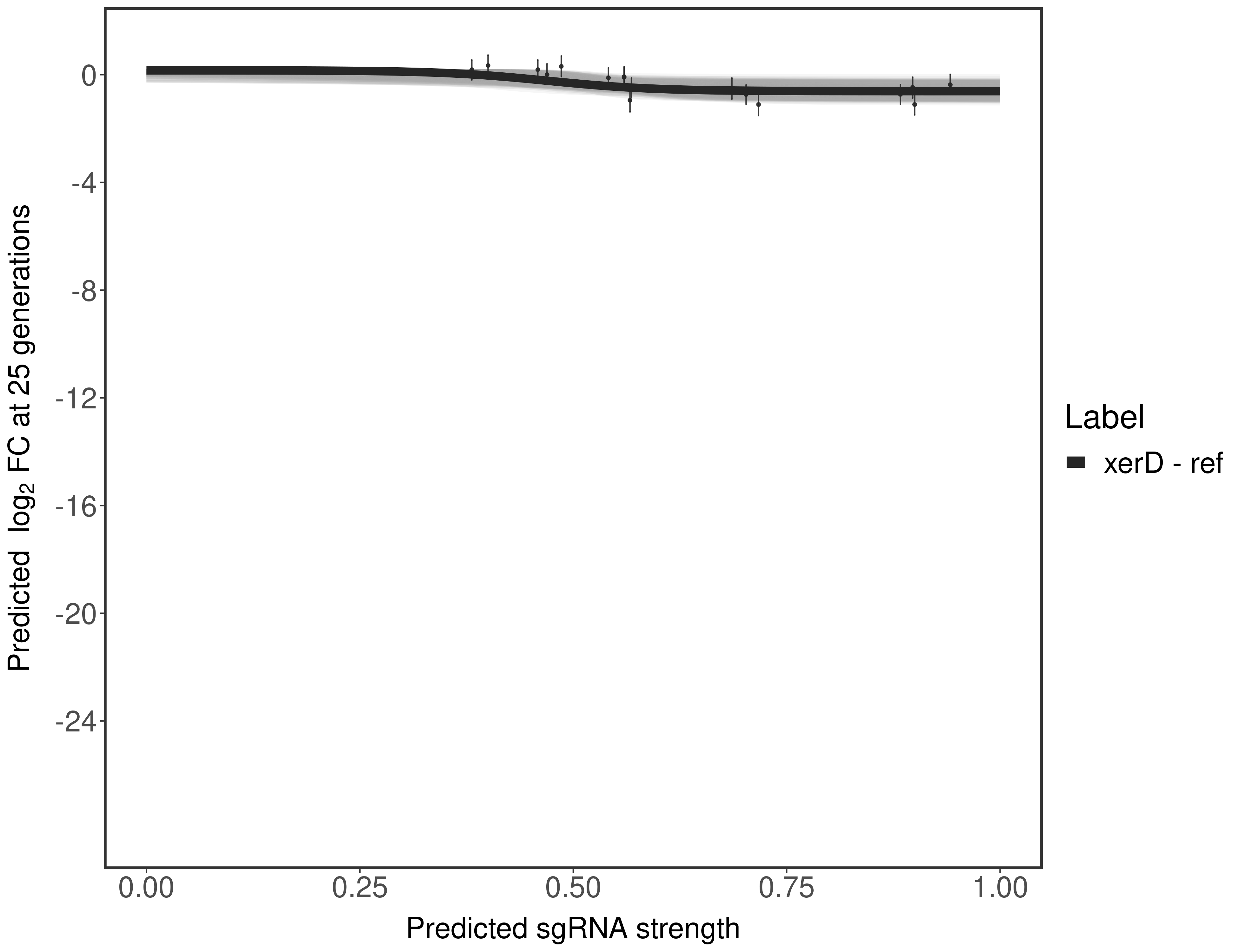 Here, we show sgRNA log2 fold-change values (L2FC) (plus versus minus ATc) over consecutive generations for sgRNAs targeting the gene you selected.