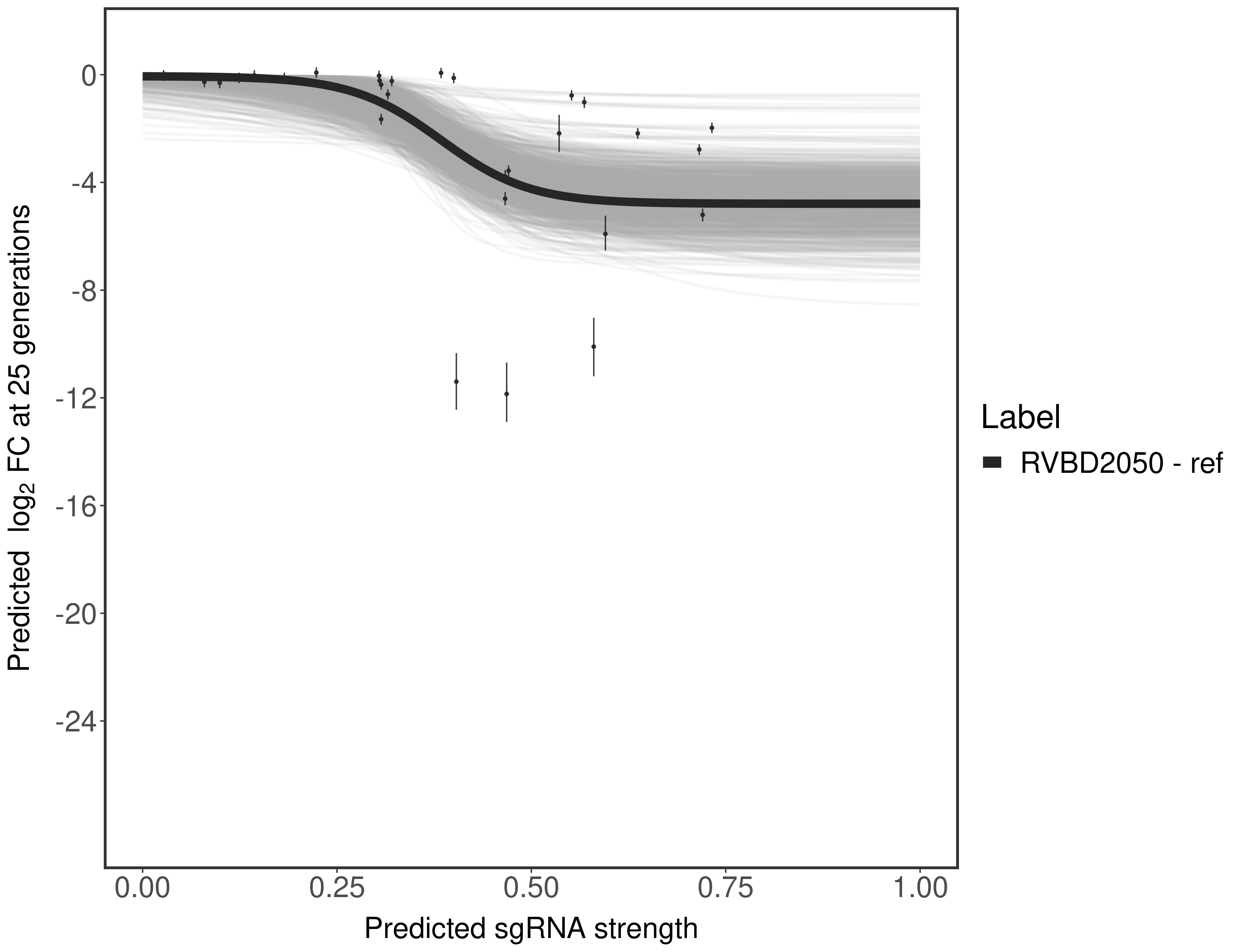 In order to quantify gene vulnerability, data were subsequently analyzed with a hierarchical model at the sgRNA level (two-line model) and gene level (Hill curve). The vulnerability quantification is shown below. [More information]