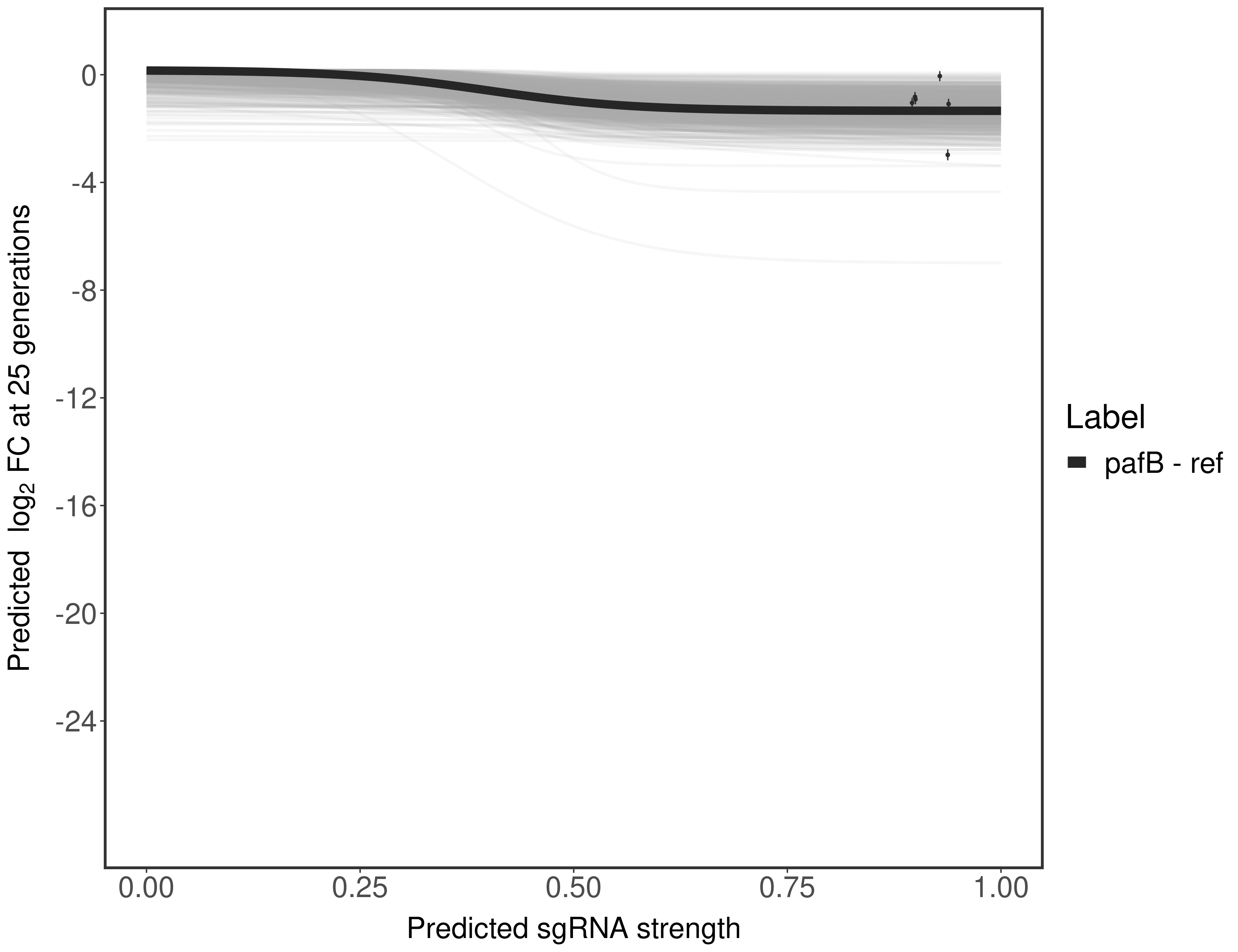Here, we show sgRNA log2 fold-change values (L2FC) (plus versus minus ATc) over consecutive generations for sgRNAs targeting the gene you selected.
