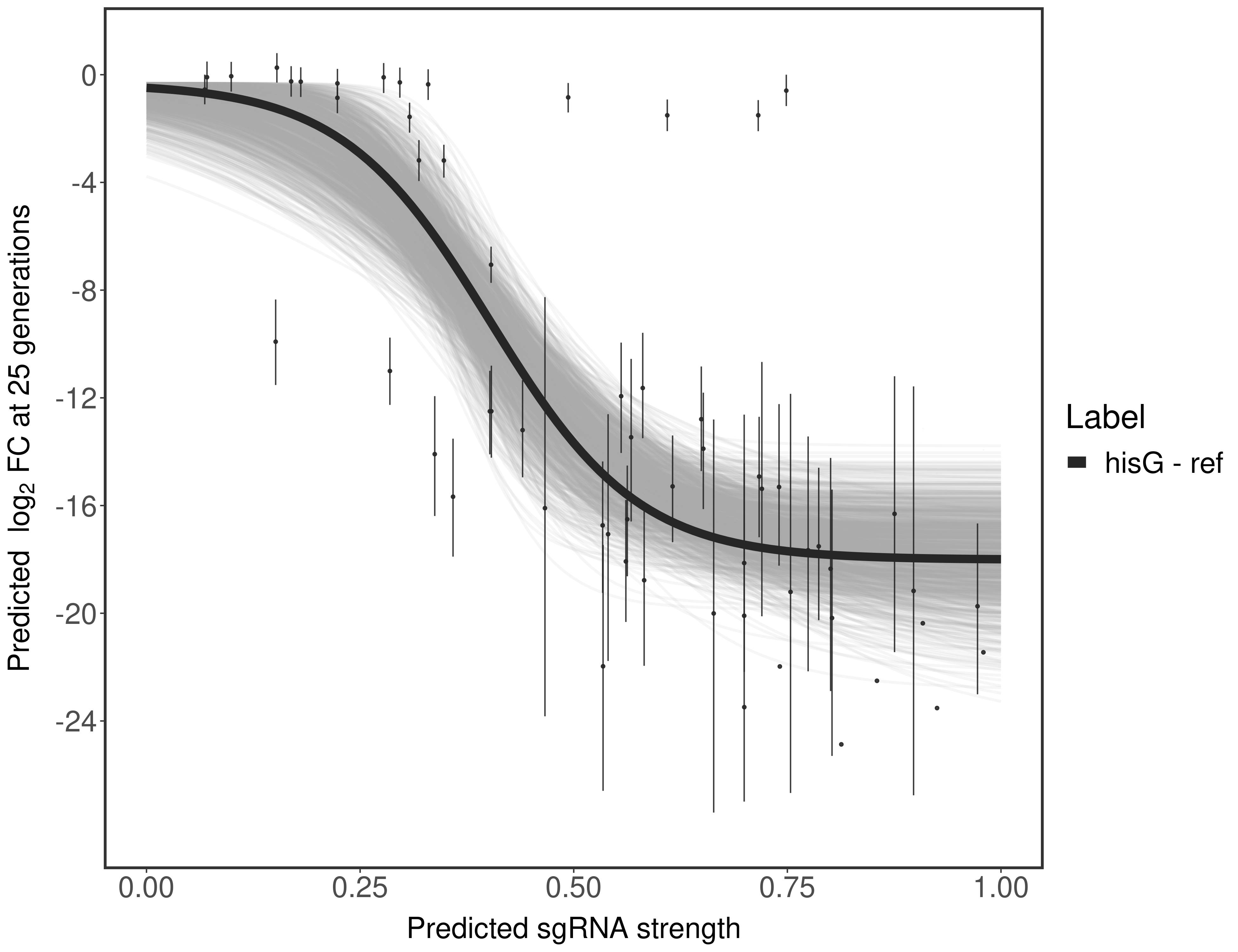 In order to quantify gene vulnerability, data were subsequently analyzed with a hierarchical model at the sgRNA level (two-line model) and gene level (Hill curve). The vulnerability quantification is shown below. [More information]