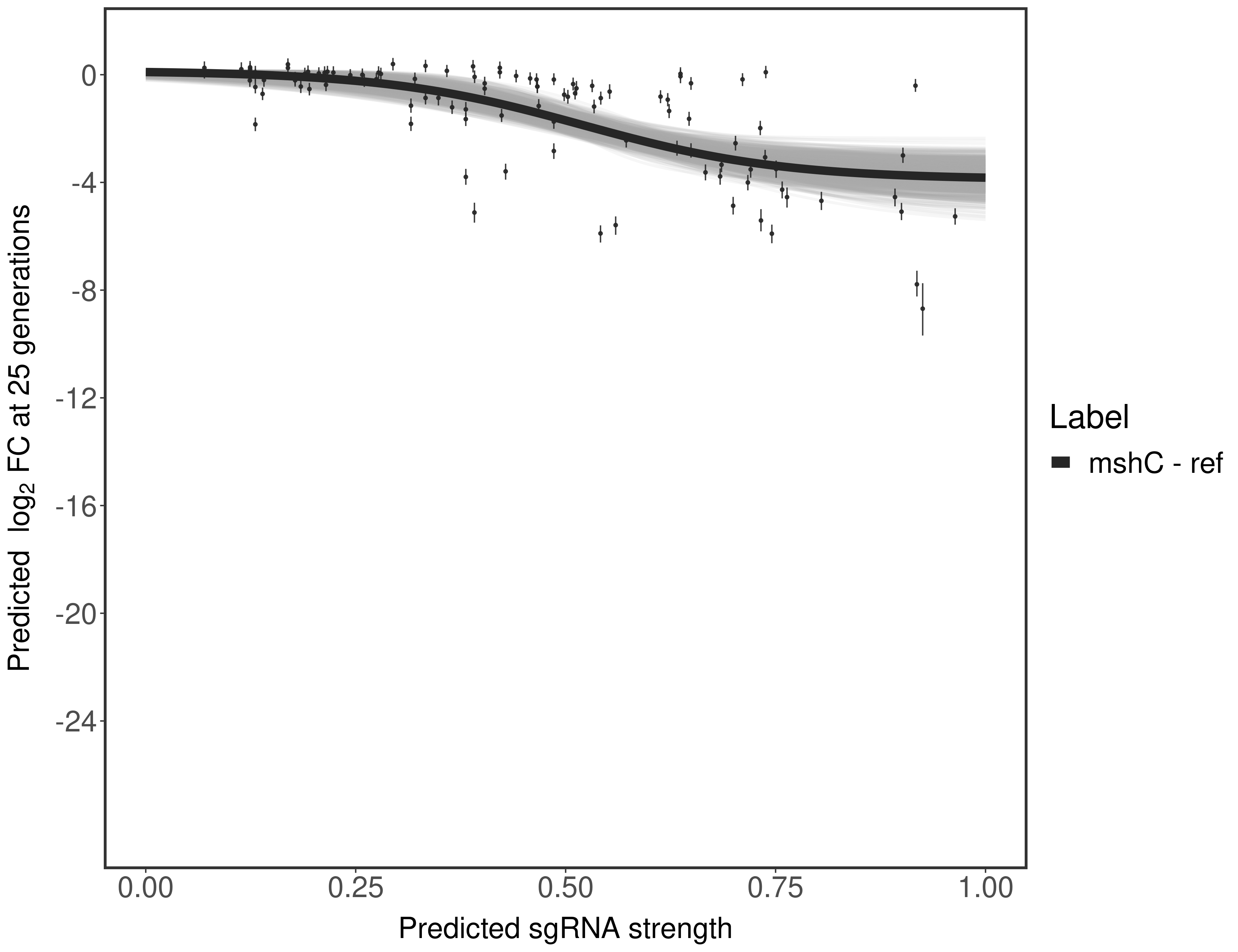In order to quantify gene vulnerability, data were subsequently analyzed with a hierarchical model at the sgRNA level (two-line model) and gene level (Hill curve). The vulnerability quantification is shown below. [More information]