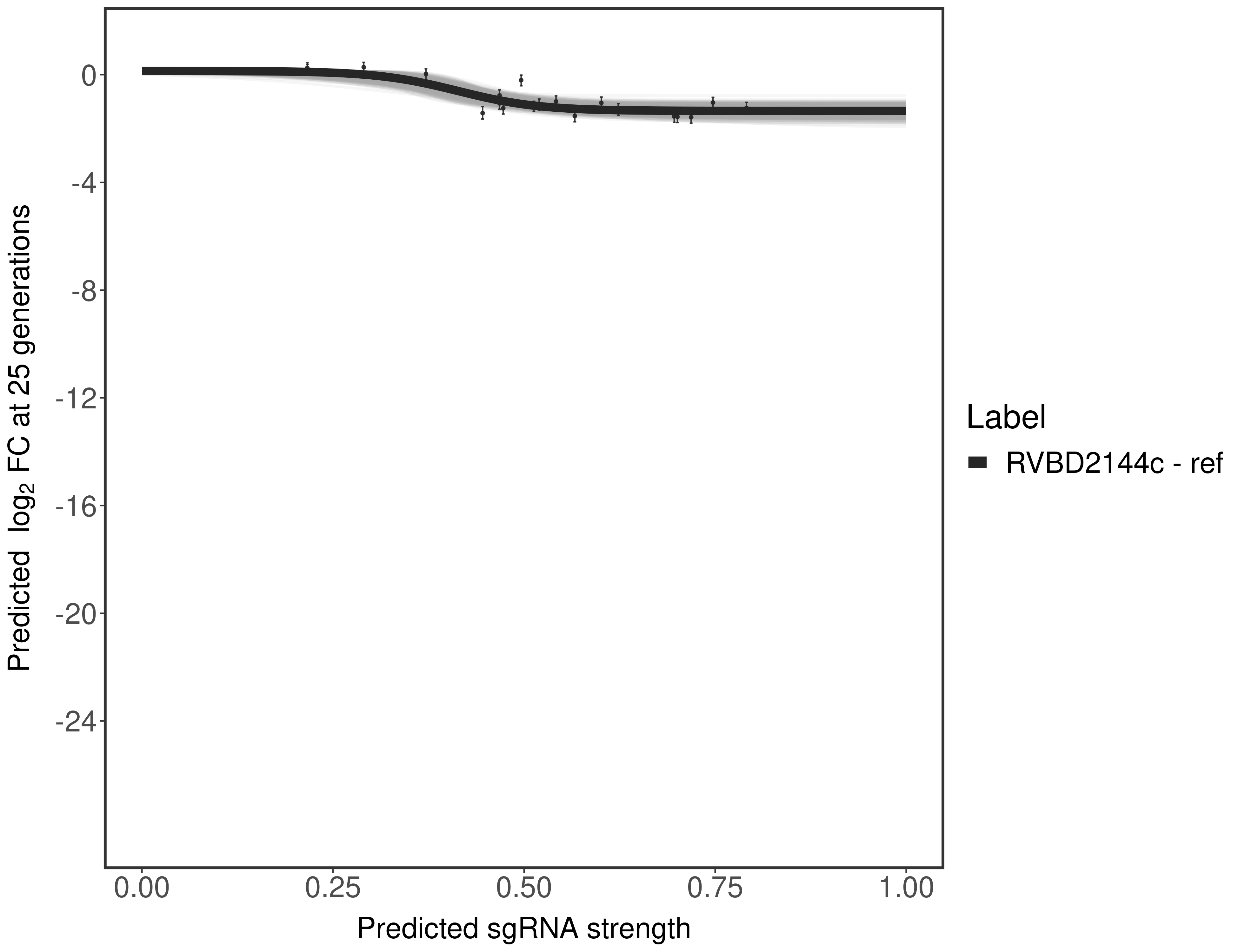 Experiment: We designed an M. tuberculosis CRISPRi library (RLC12) to target all annotated Mtb genes with single guide RNAs (sgRNAs) of varying predicted knockdown efficiencies.