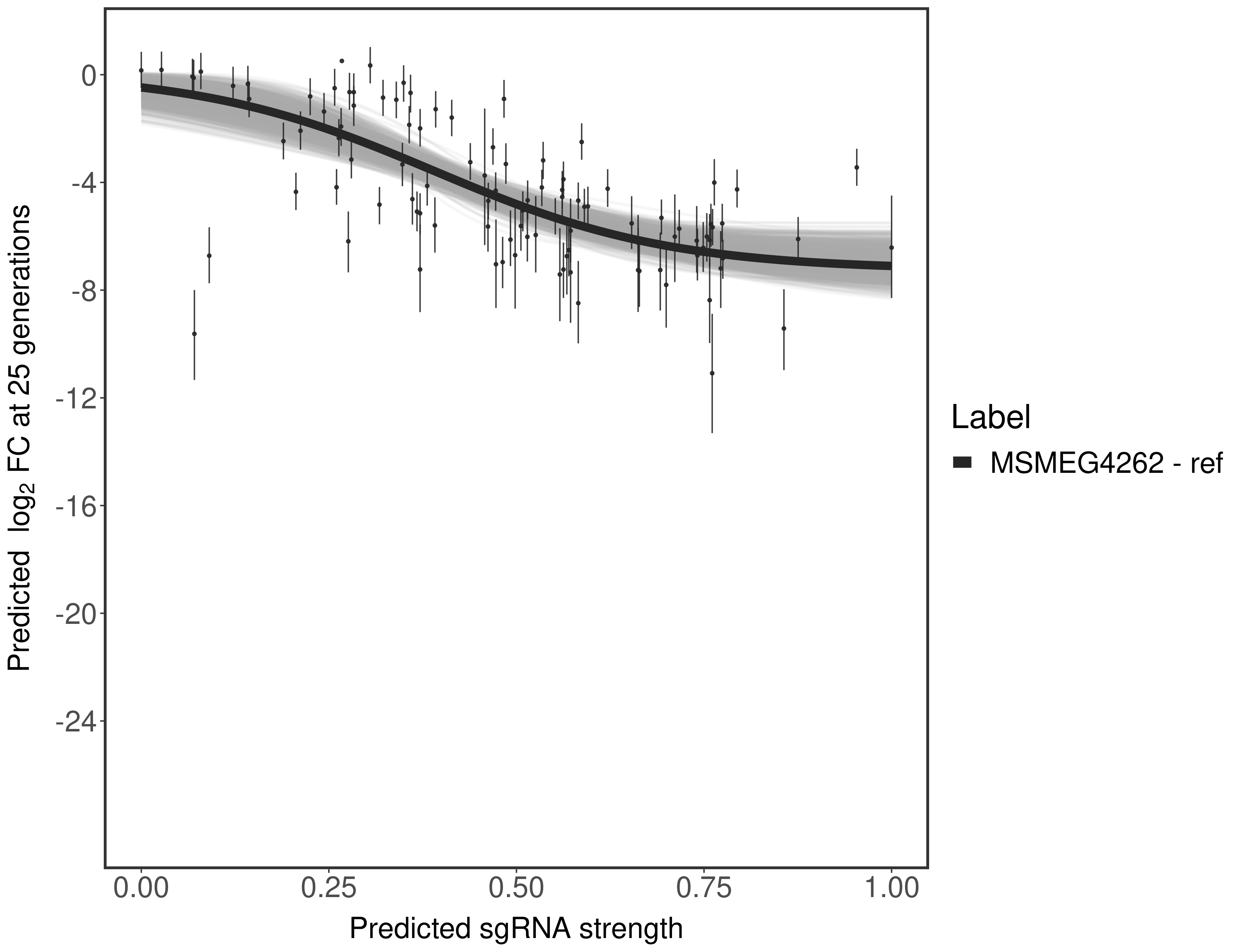 Experiment: We designed an M. tuberculosis CRISPRi library (RLC12) to target all annotated Mtb genes with single guide RNAs (sgRNAs) of varying predicted knockdown efficiencies.