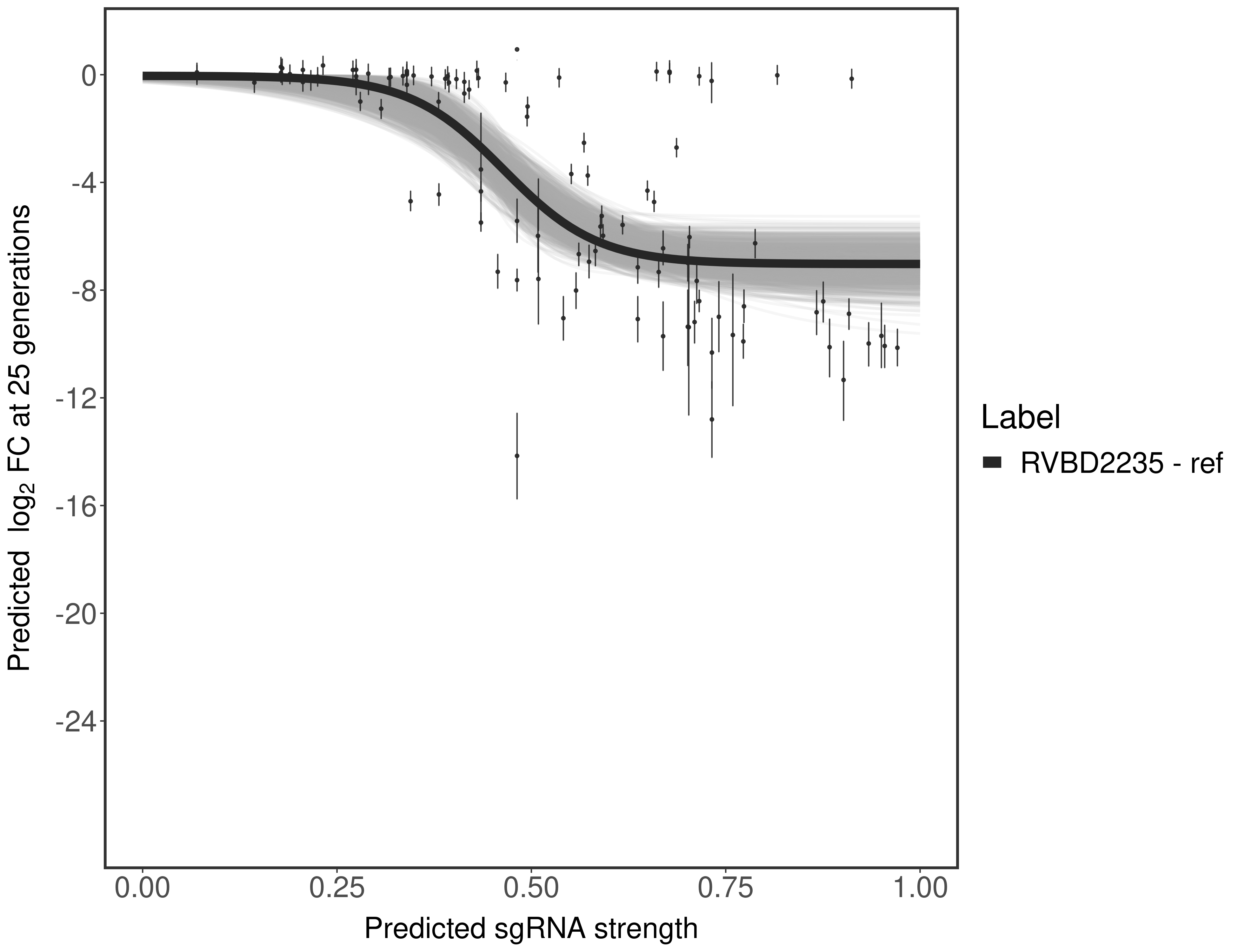 Experiment: We designed an M. tuberculosis CRISPRi library (RLC12) to target all annotated Mtb genes with single guide RNAs (sgRNAs) of varying predicted knockdown efficiencies.
