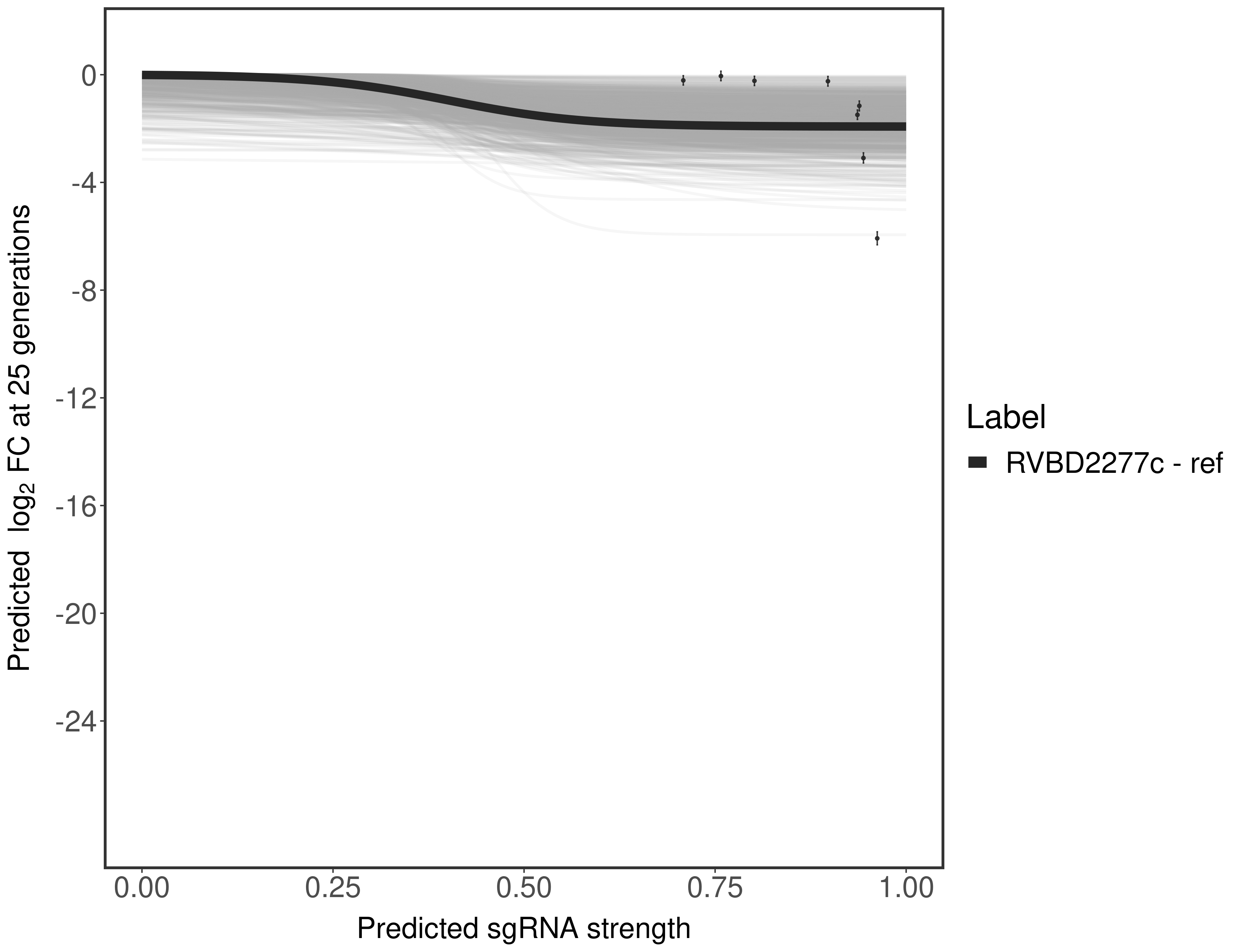 Here, we show sgRNA log2 fold-change values (L2FC) (plus versus minus ATc) over consecutive generations for sgRNAs targeting the gene you selected.