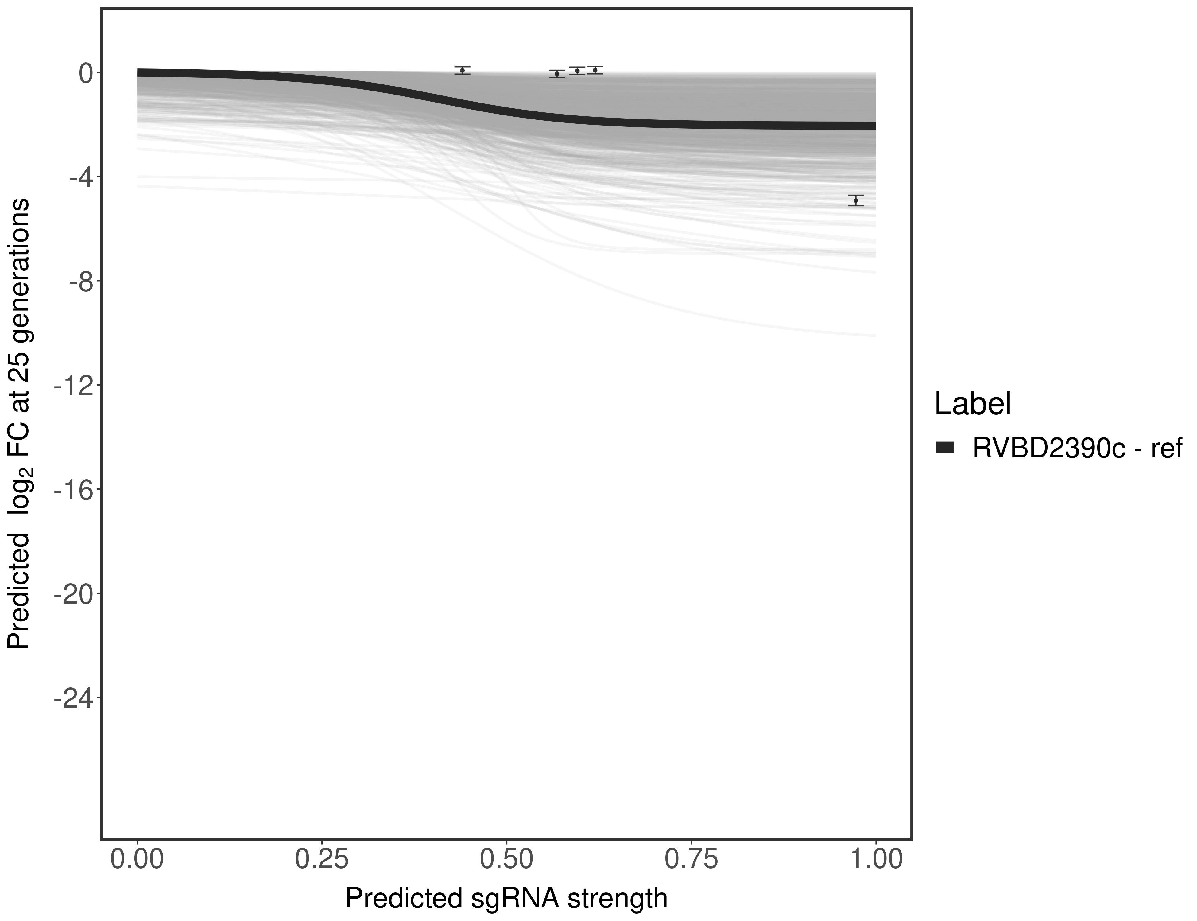 Here, we show sgRNA log2 fold-change values (L2FC) (plus versus minus ATc) over consecutive generations for sgRNAs targeting the gene you selected.