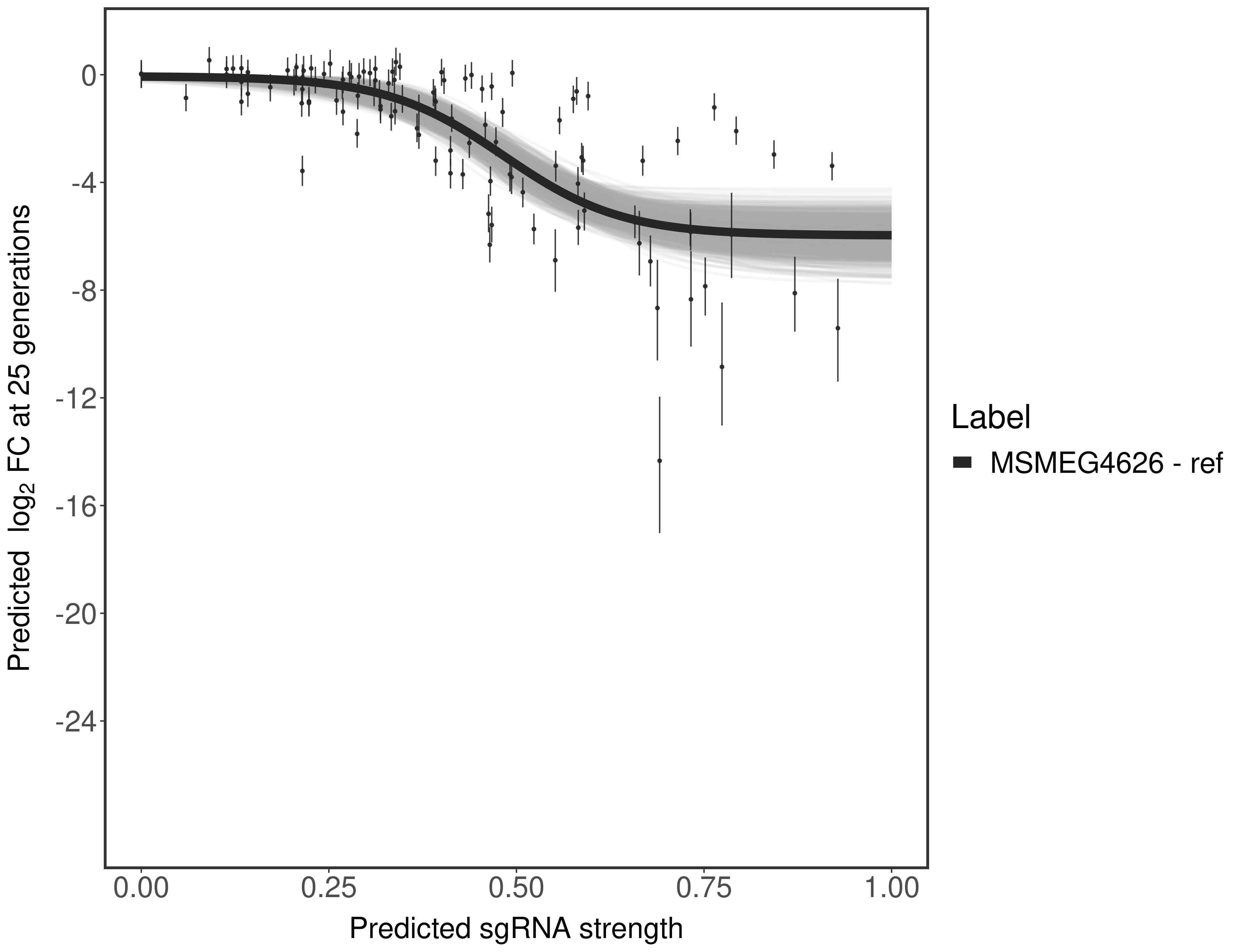 Experiment: We designed an M. tuberculosis CRISPRi library (RLC12) to target all annotated Mtb genes with single guide RNAs (sgRNAs) of varying predicted knockdown efficiencies.