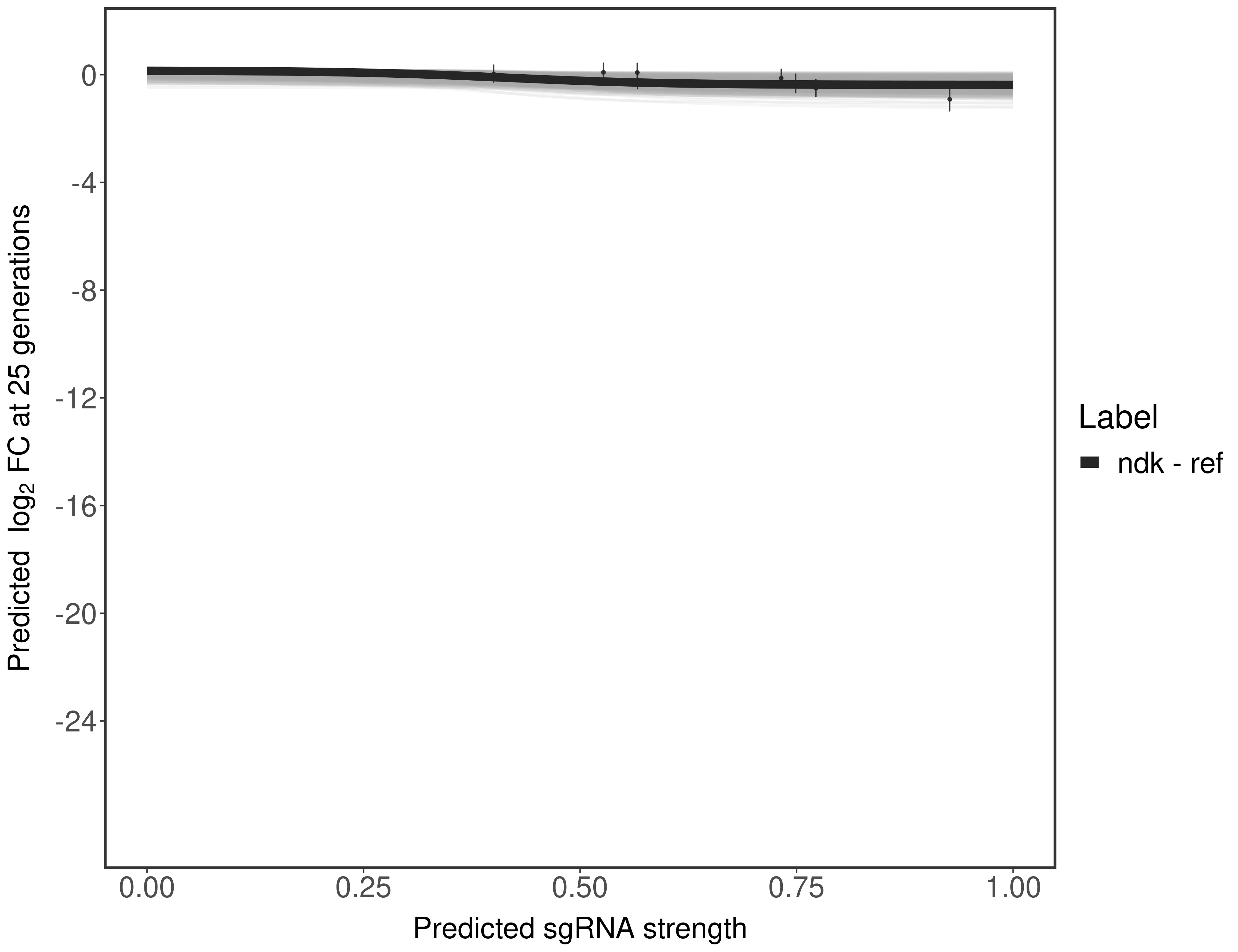 In order to quantify gene vulnerability, data were subsequently analyzed with a hierarchical model at the sgRNA level (two-line model) and gene level (Hill curve). The vulnerability quantification is shown below. [More information]