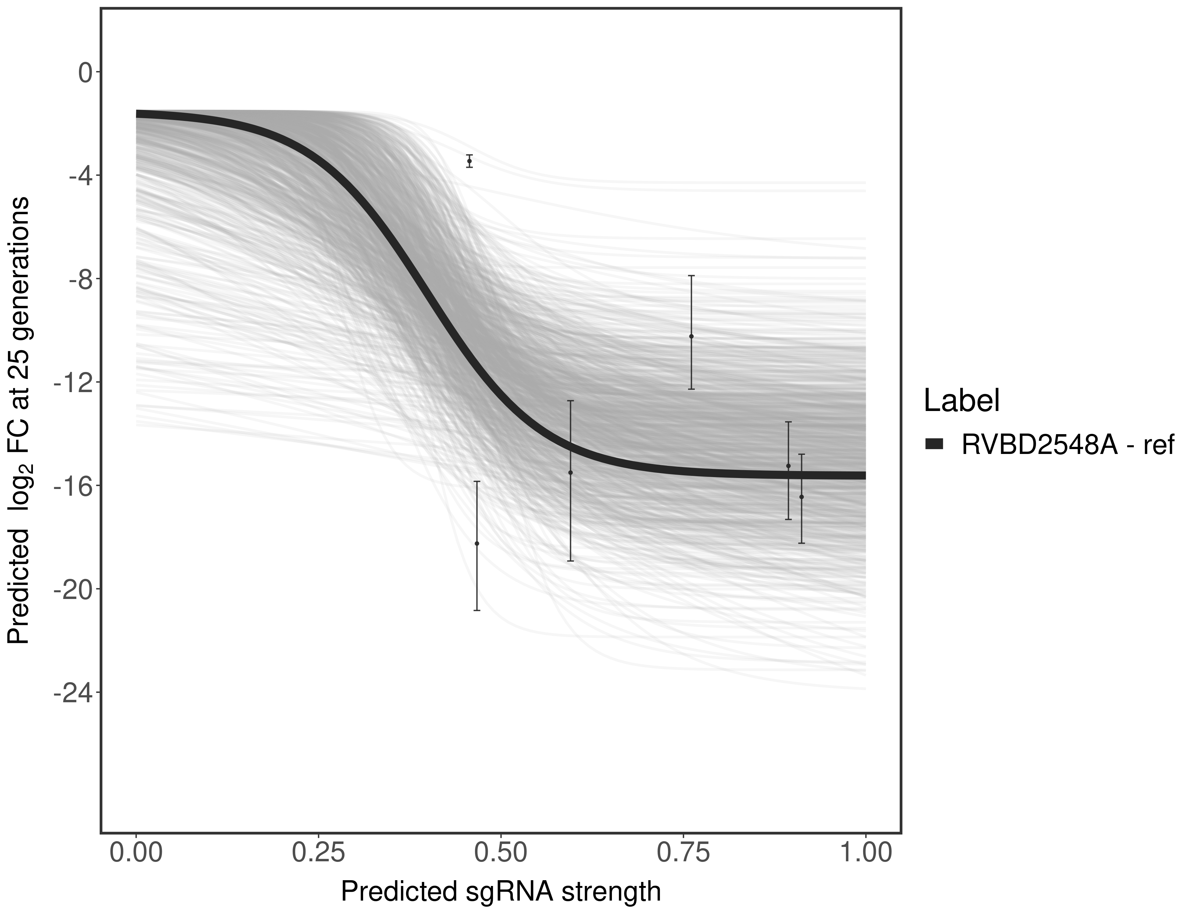 Experiment: We designed an M. tuberculosis CRISPRi library (RLC12) to target all annotated Mtb genes with single guide RNAs (sgRNAs) of varying predicted knockdown efficiencies.