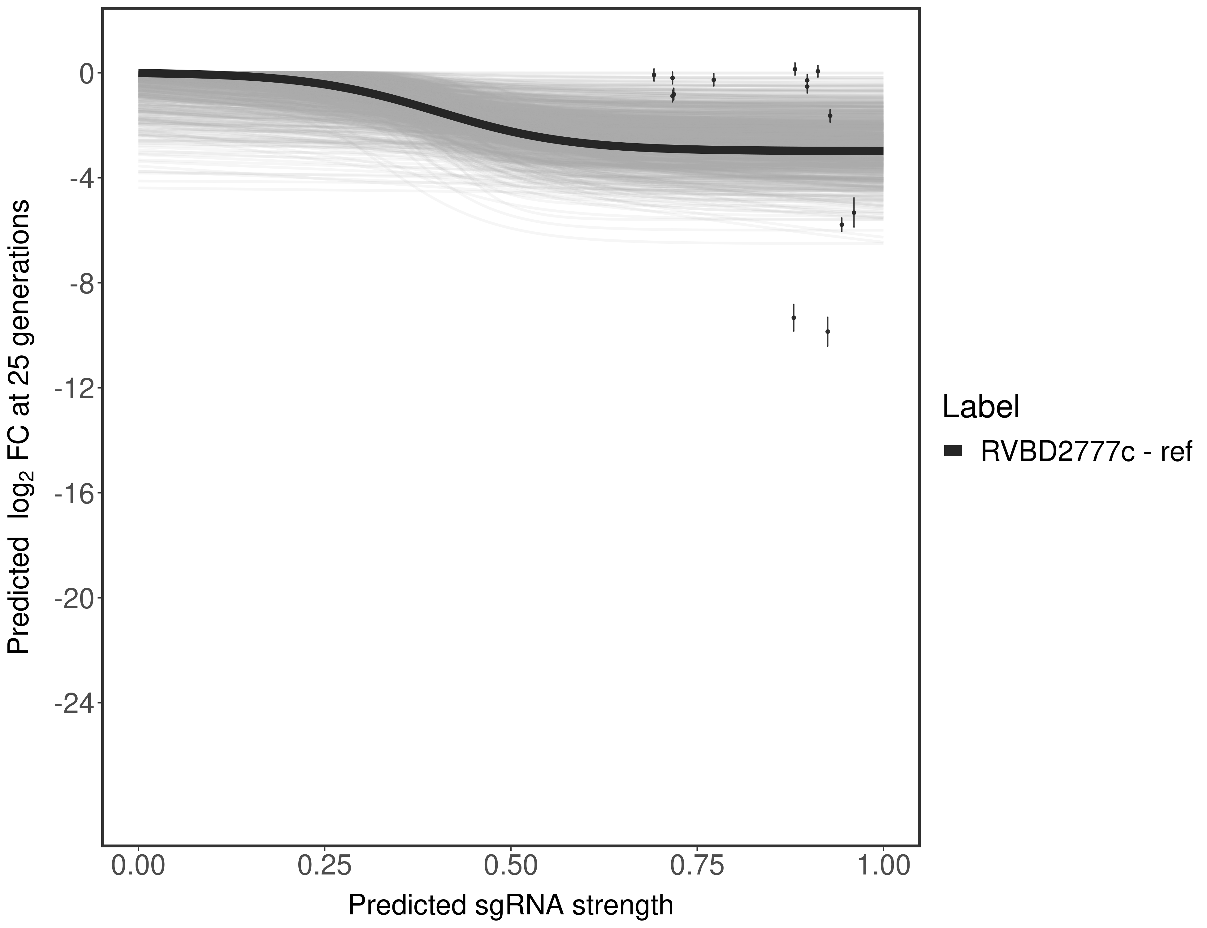 In order to quantify gene vulnerability, data were subsequently analyzed with a hierarchical model at the sgRNA level (two-line model) and gene level (Hill curve). The vulnerability quantification is shown below. [More information]