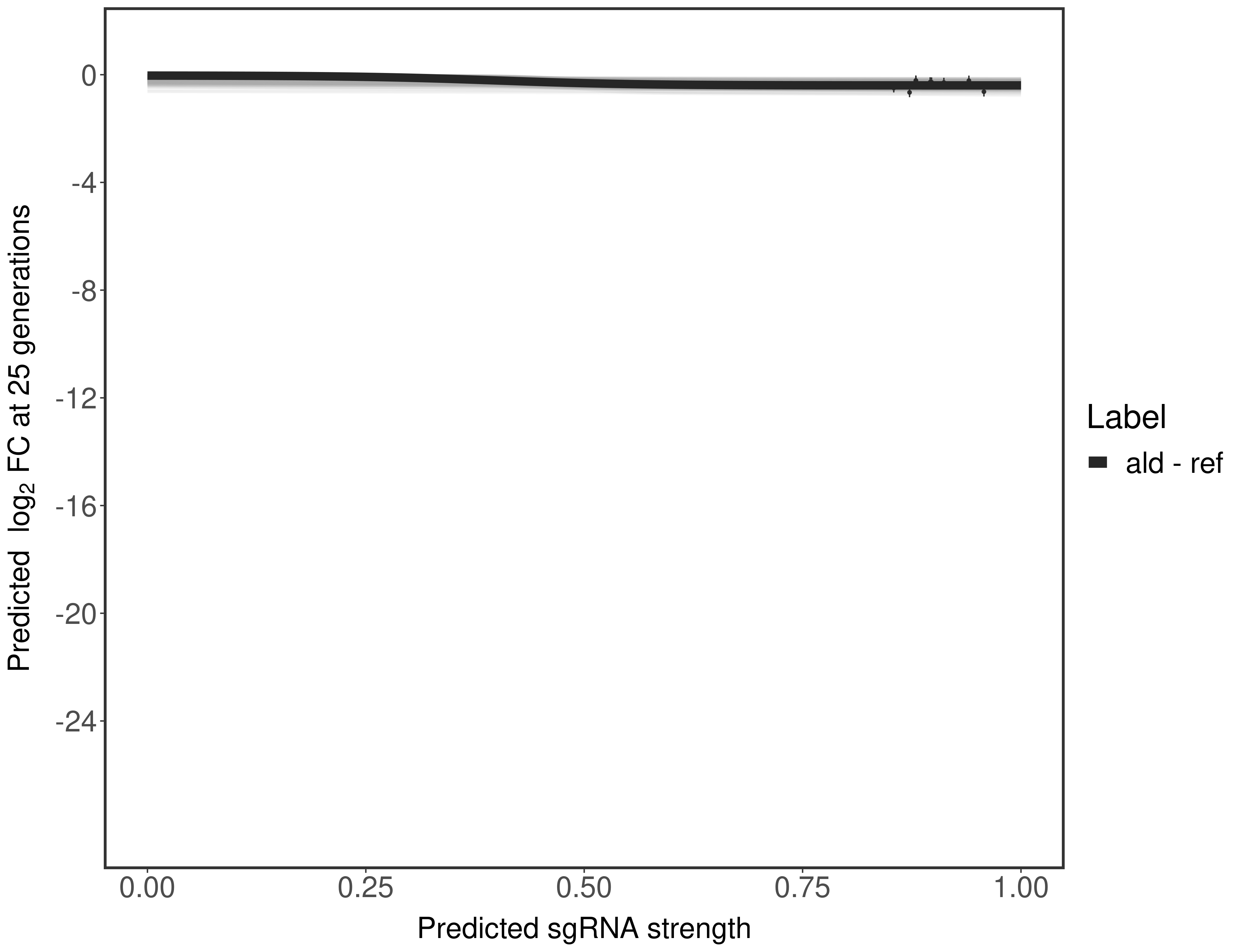 sgRNAs are color-coded based on their predicted strength from blue (strength=0; weak) to red (strength=1; strong).