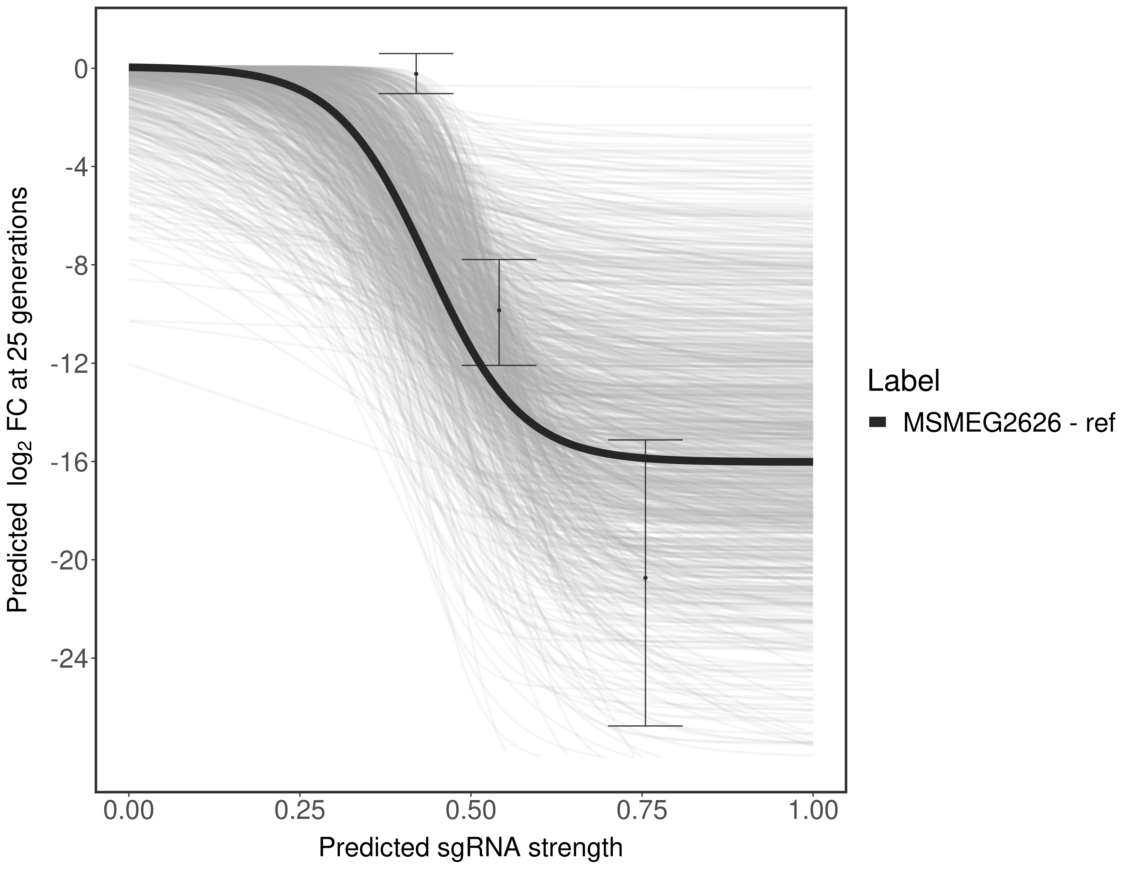 Experiment: We designed an M. tuberculosis CRISPRi library (RLC12) to target all annotated Mtb genes with single guide RNAs (sgRNAs) of varying predicted knockdown efficiencies.