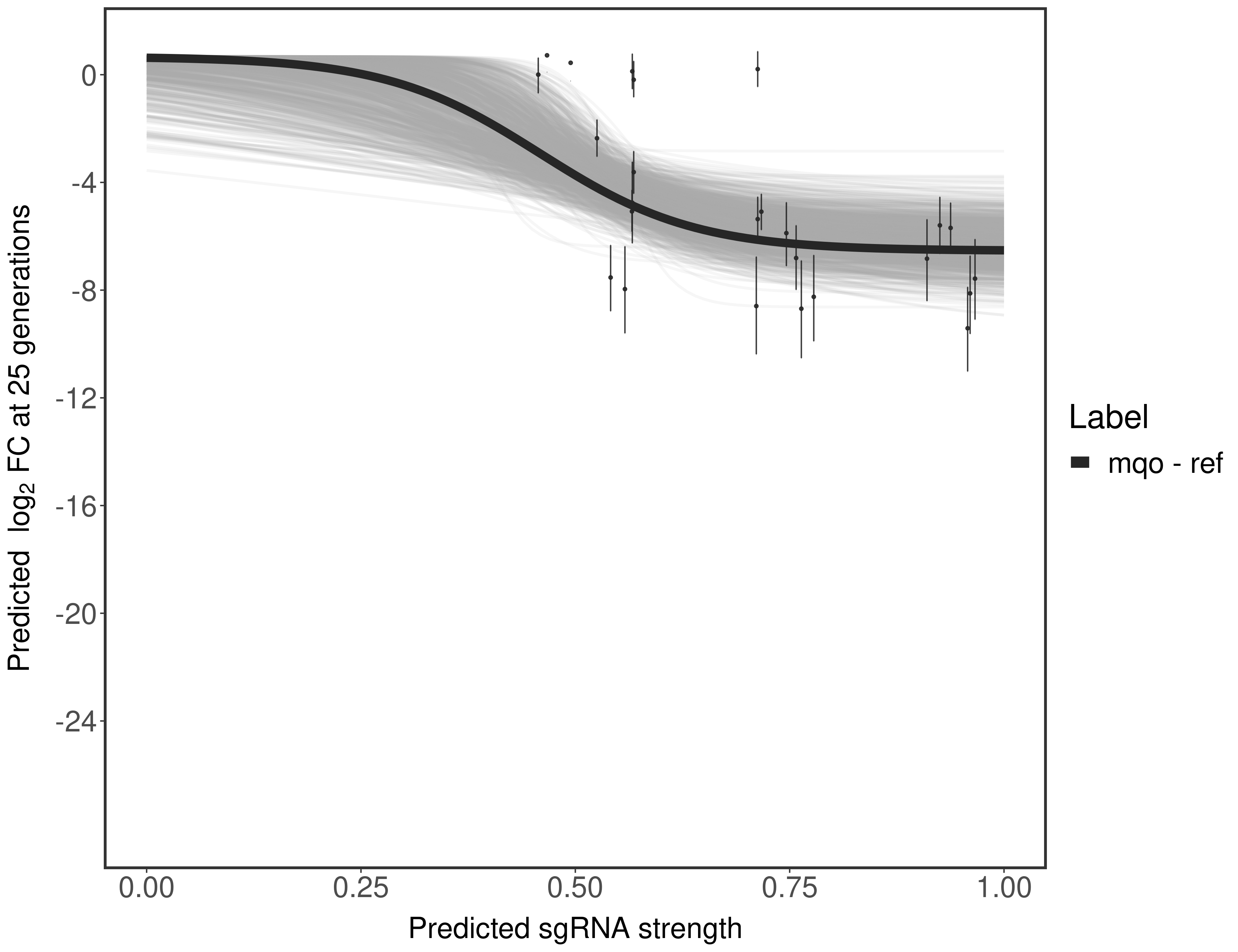 In order to quantify gene vulnerability, data were subsequently analyzed with a hierarchical model at the sgRNA level (two-line model) and gene level (Hill curve). The vulnerability quantification is shown below. [More information]