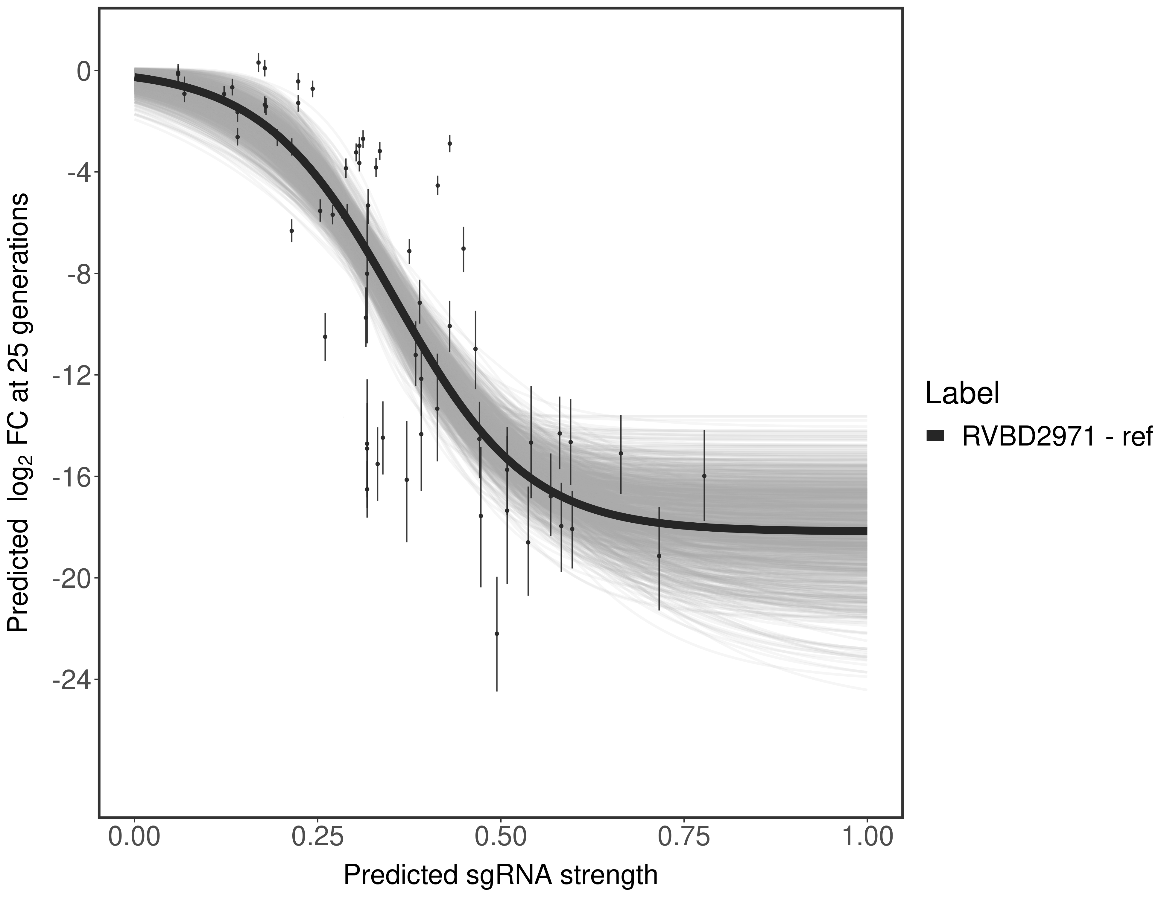 In order to quantify gene vulnerability, data were subsequently analyzed with a hierarchical model at the sgRNA level (two-line model) and gene level (Hill curve). The vulnerability quantification is shown below. [More information]