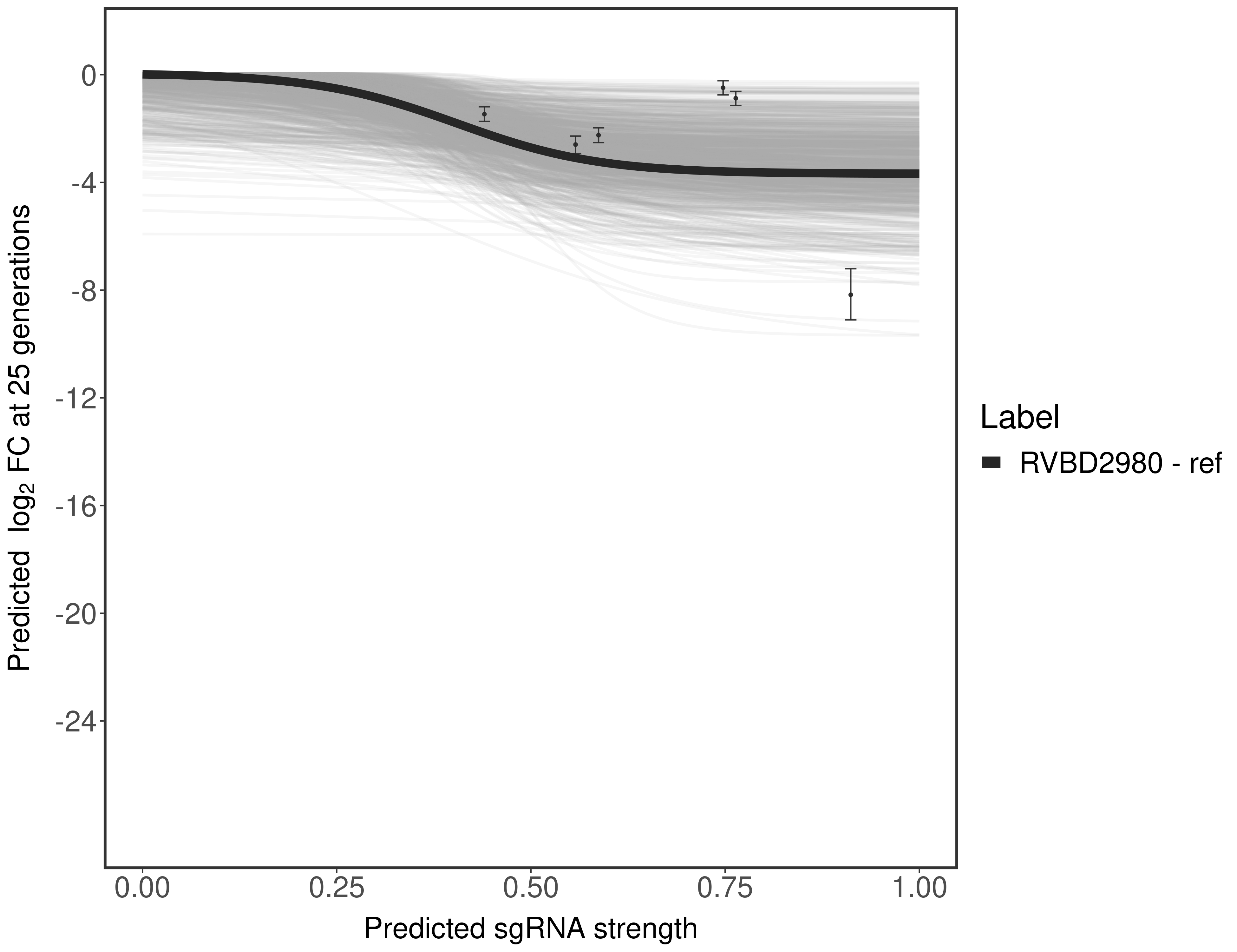Experiment: We designed an M. tuberculosis CRISPRi library (RLC12) to target all annotated Mtb genes with single guide RNAs (sgRNAs) of varying predicted knockdown efficiencies.