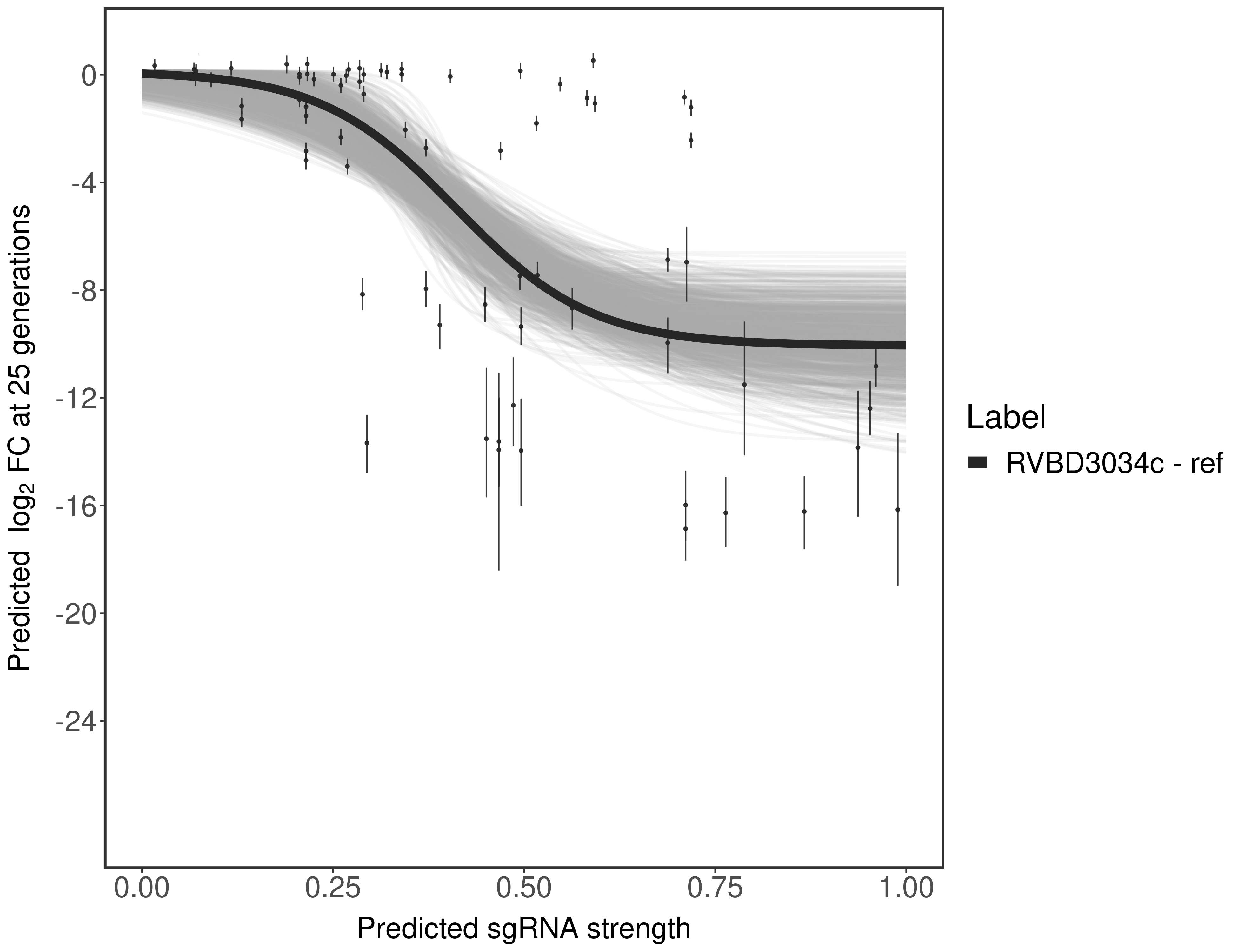 In order to quantify gene vulnerability, data were subsequently analyzed with a hierarchical model at the sgRNA level (two-line model) and gene level (Hill curve). The vulnerability quantification is shown below. [More information]
