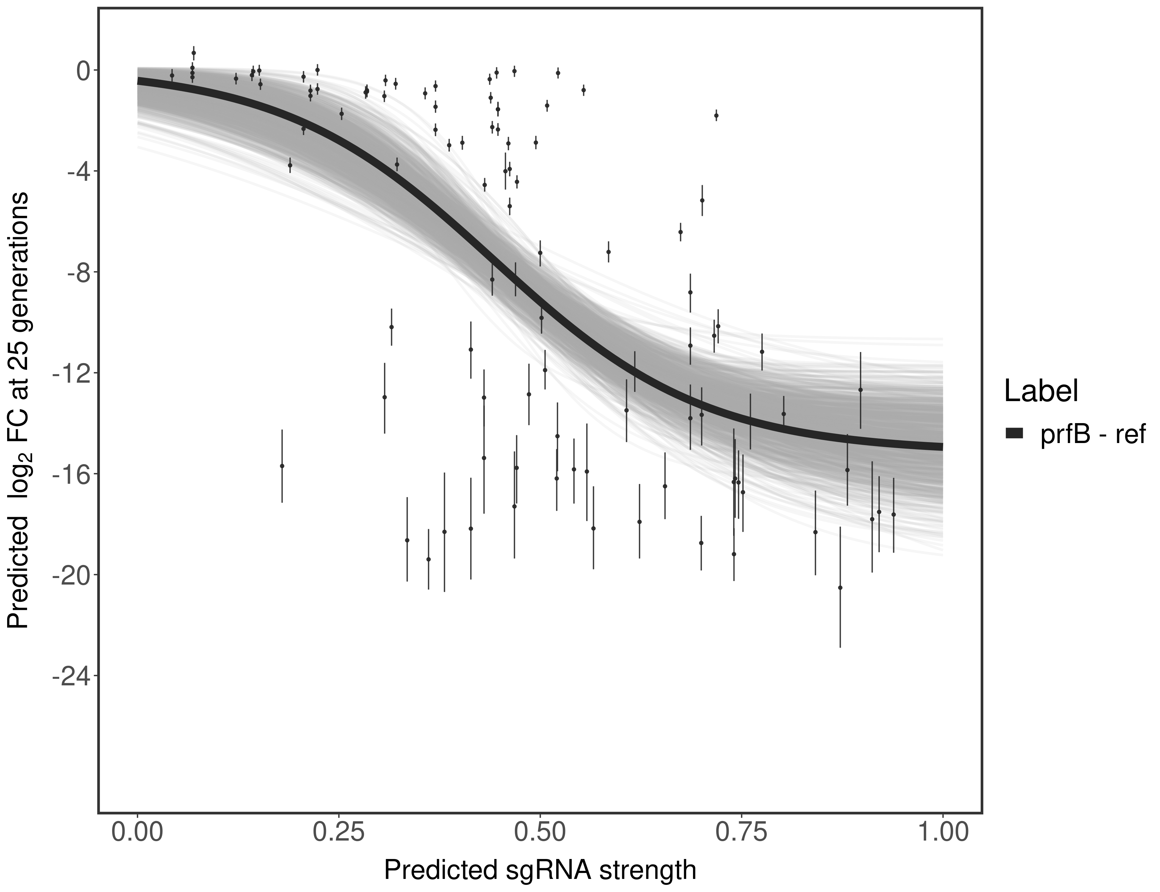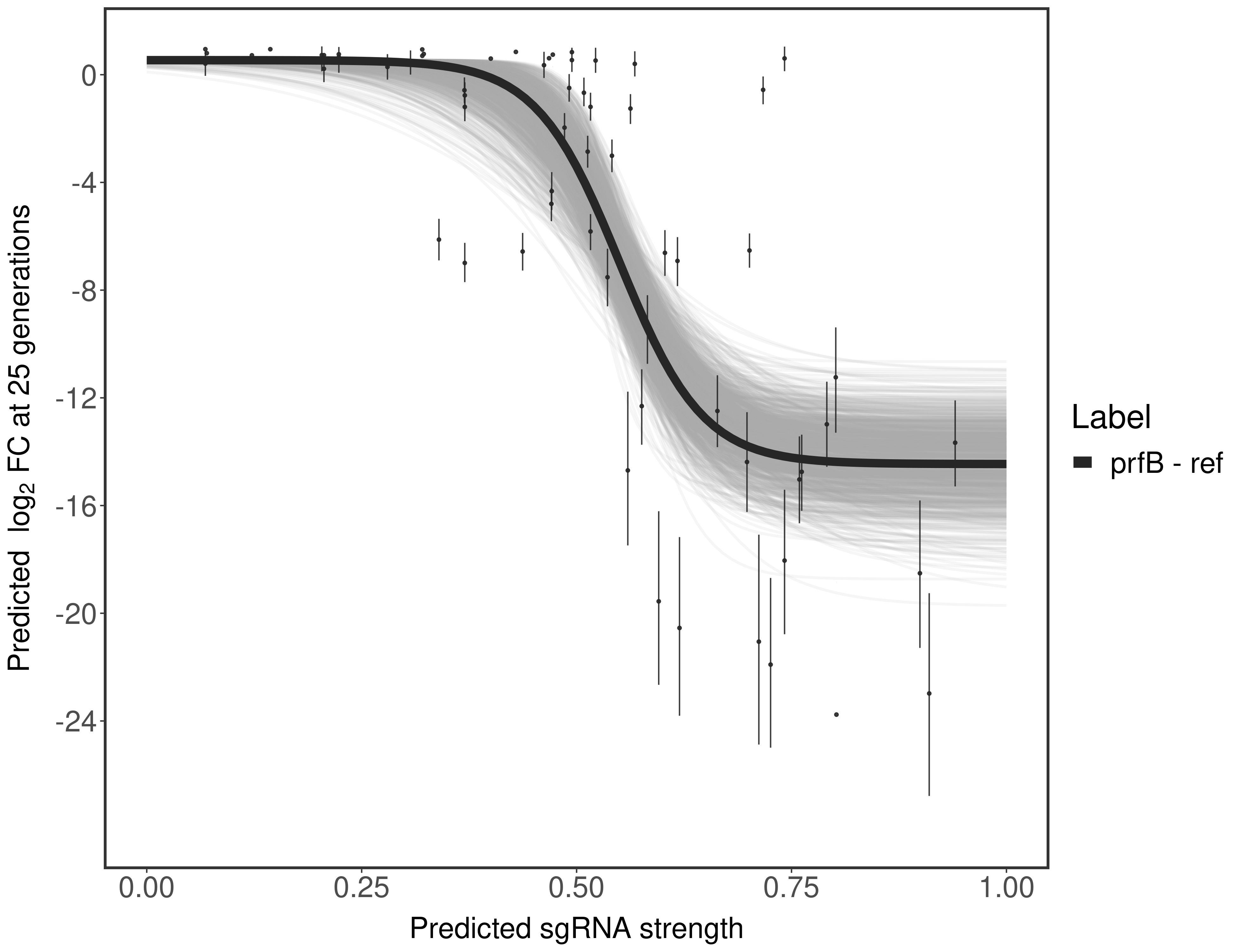 In order to quantify gene vulnerability, data were subsequently analyzed with a hierarchical model at the sgRNA level (two-line model) and gene level (Hill curve). The vulnerability quantification is shown below. [More information]